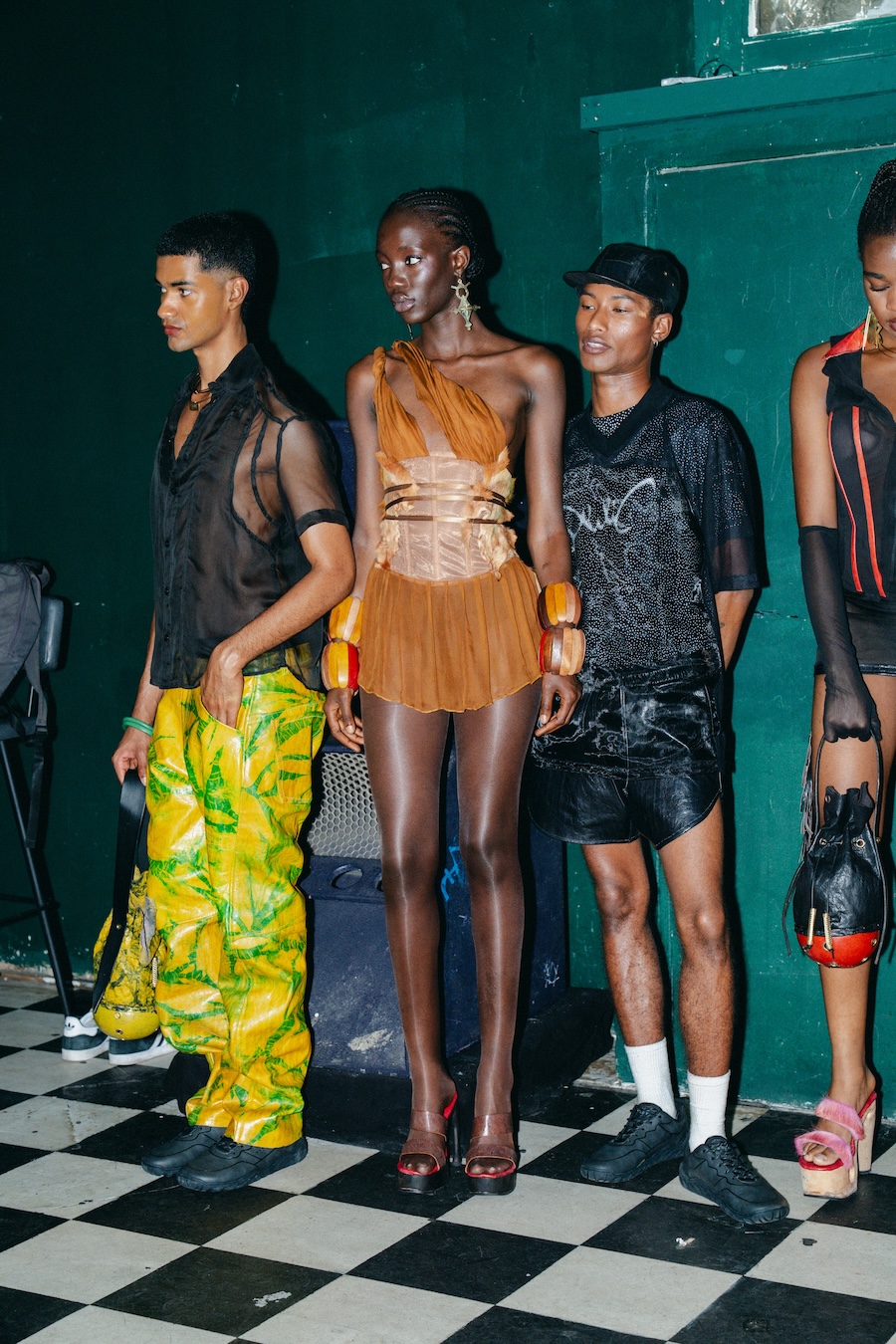 And let’s not forget the behind-the-scenes magic—SHIN JEONG HOON went backstage just for us, weaving his spell for this unforgettable showcase. Founded by Kusi Kubi, PALMWINE IceCREAM is a fashion label that harmonises diverse influences, cultural emotions, and audacious creativity, bridging the vibrant landscapes of London and Accra.