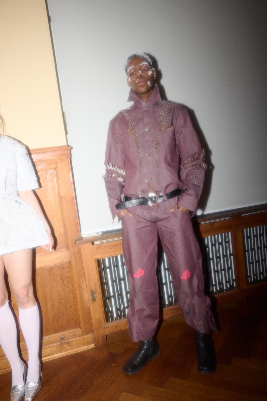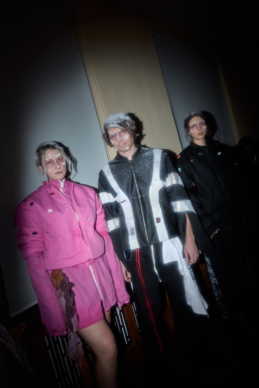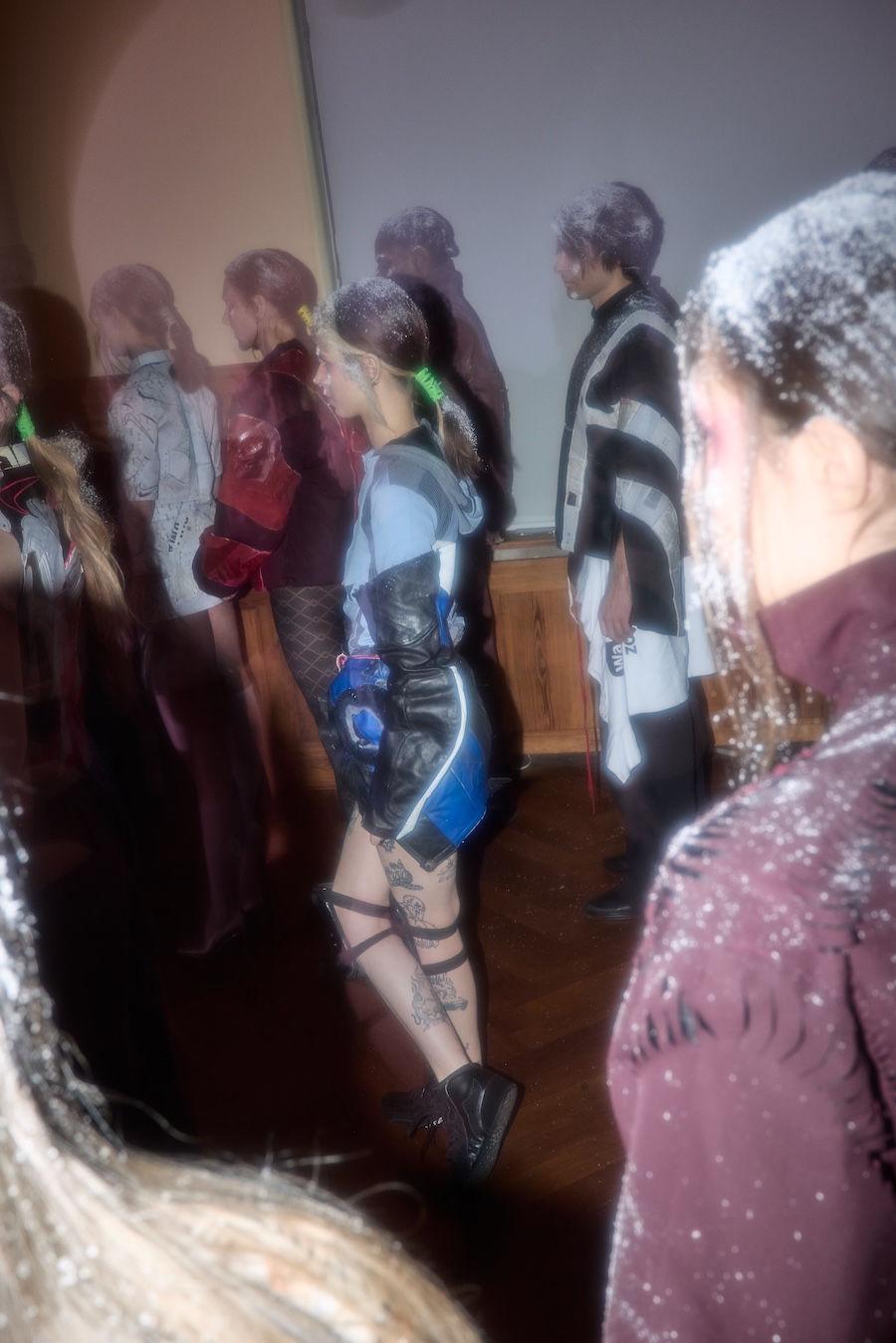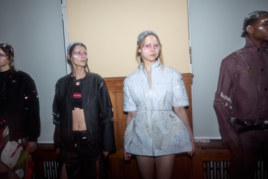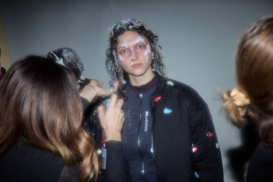 Rejecting conventional gender divisions, the collection offers two fit systems, feminine and masculine, each representing an equal share of 15 looks. The styling by Gianni.vas enhances silhouettes, amplifying themes of tension and provocation. An open casting approach invites a diverse array of models, including both professionals and non-models, across various genders and appearances. The makeup design carries social significance, featuring visual references to frostbite and snow, which echo the ongoing humanitarian crisis in Ukraine, a reflection of the region’s challenging circumstances.