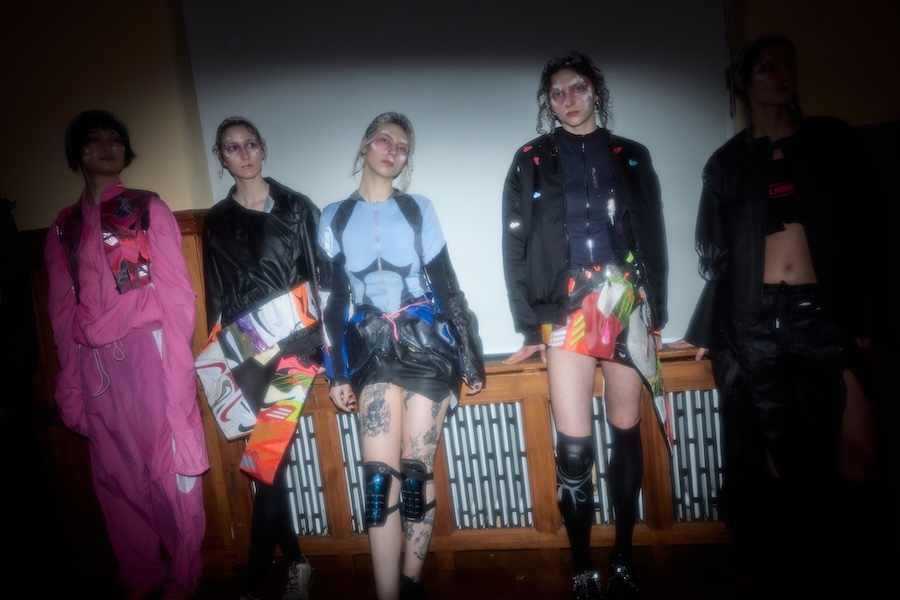 Founded in 2021 by Mitya Hontarenko and Iryna Ambrosova, PLNGNS is a multi-award-winning fashion initiative rooted in Kyiv and based in Berlin. The brand is redefining circular design through its innovative processes, transforming discarded sneakers into one-of-a-kind garments that generate minimal additional CO2 emissions. Recognised with awards such as the Berlin-Contemporary and ITS Footwear Award, PLNGNS has been an influential voice in the Berlin Fashion Week schedule since the FW24 season.
