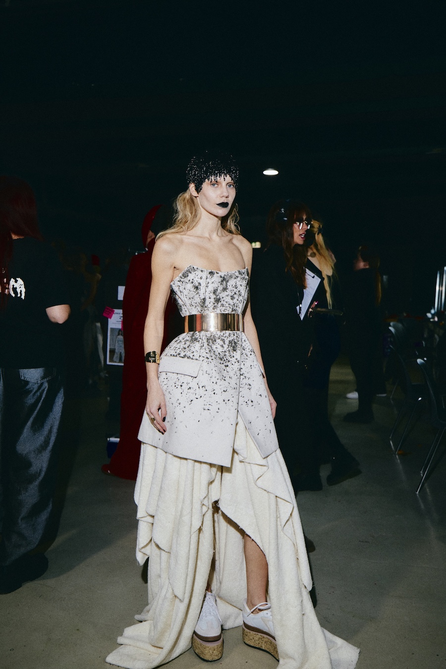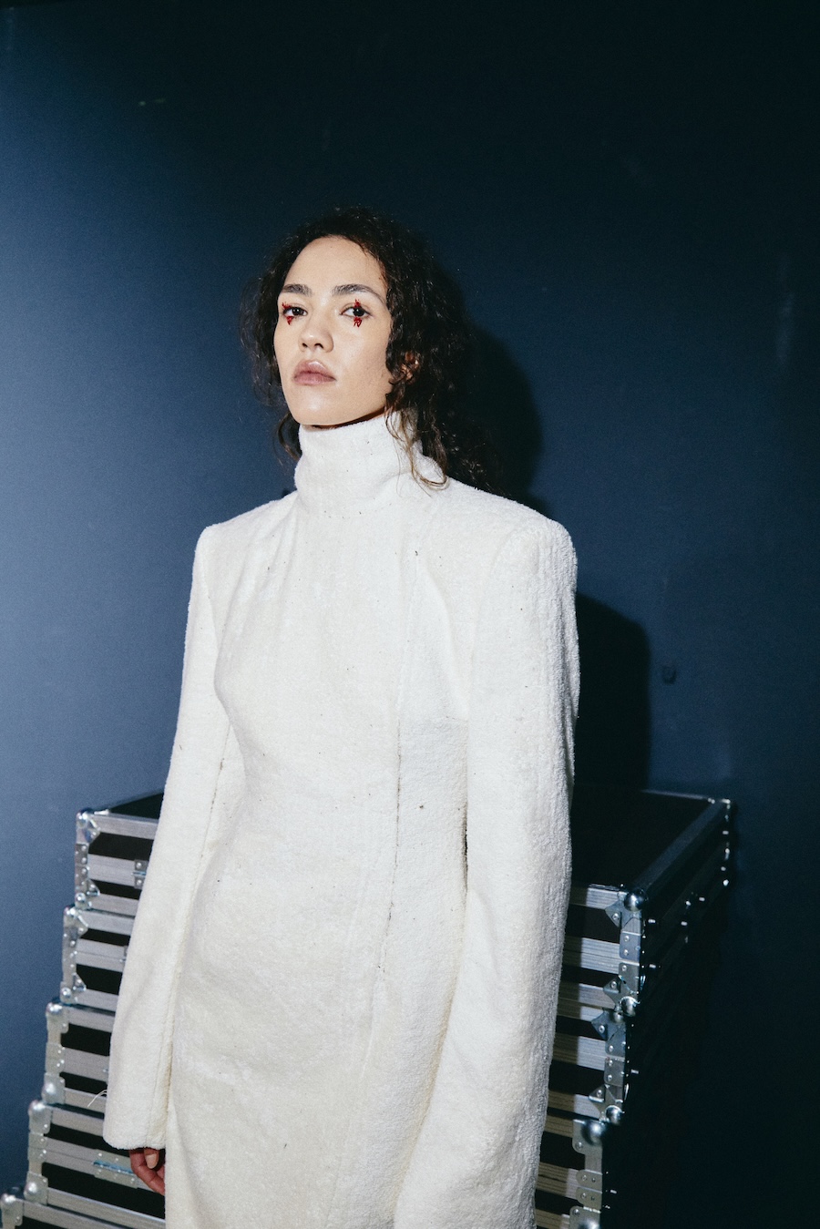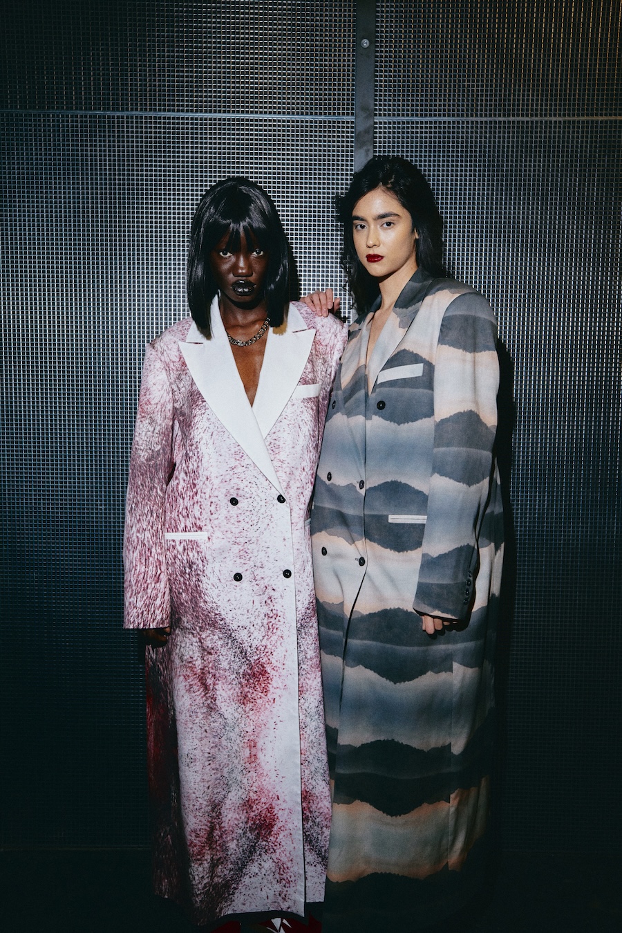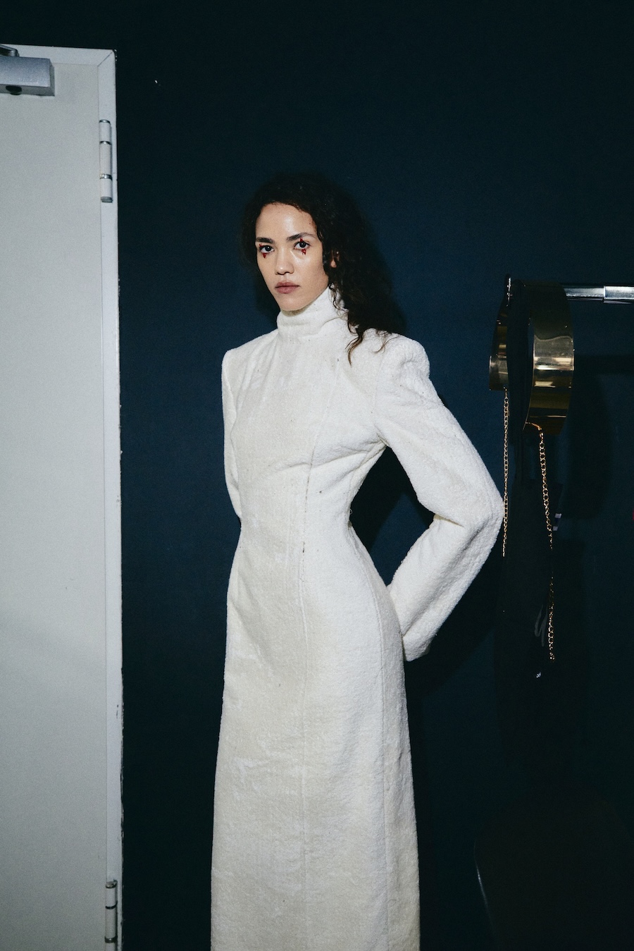 Silhouettes draw from a minimalist avant-garde framework, where sculptural corsetry encounters fluid draping, and rigid materials are juxtaposed against movement. Volume is achieved through both structured construction and organic dissolution. The body is displayed rather than concealed, emphasising a sense of companionship in style.