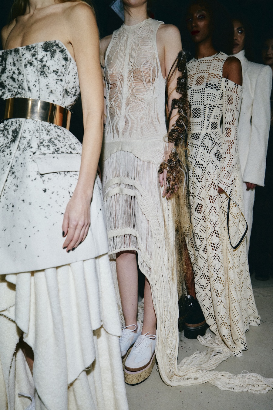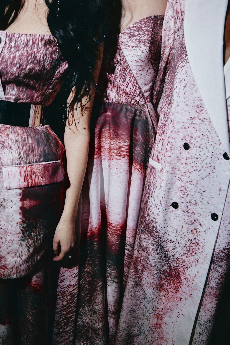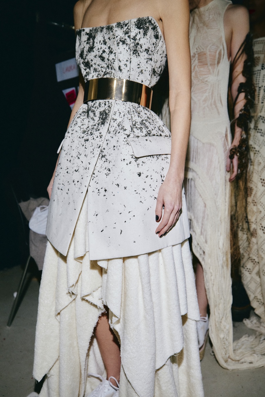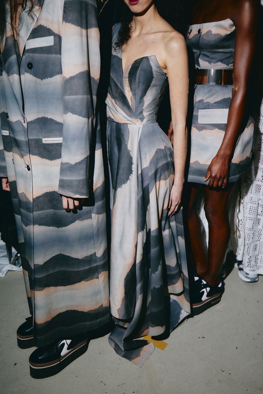 Silhouettes draw from a minimalist avant-garde framework, where sculptural corsetry encounters fluid draping, and rigid materials are juxtaposed against movement. Volume is achieved through both structured construction and organic dissolution. The body is displayed rather than concealed, emphasising a sense of companionship in style.