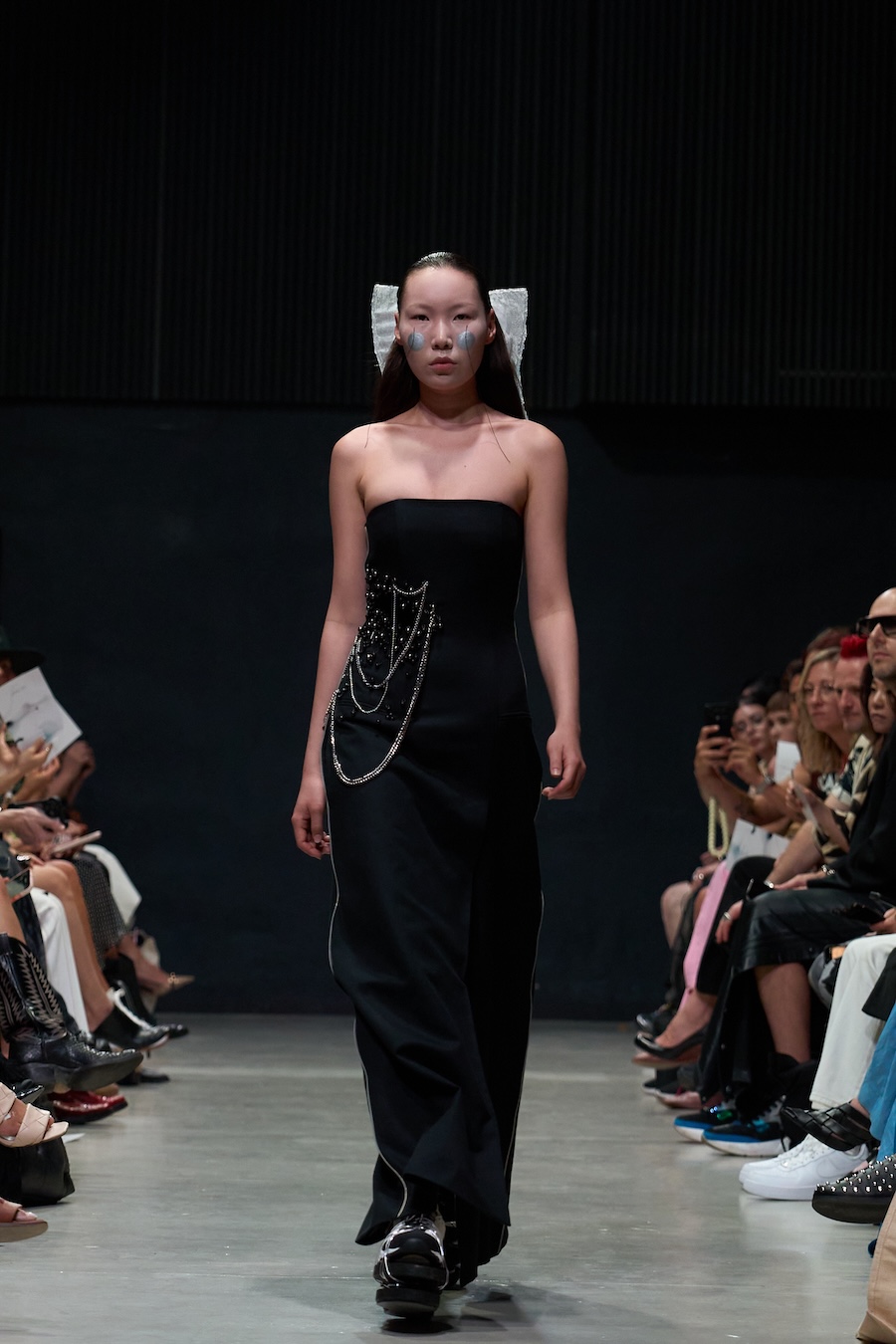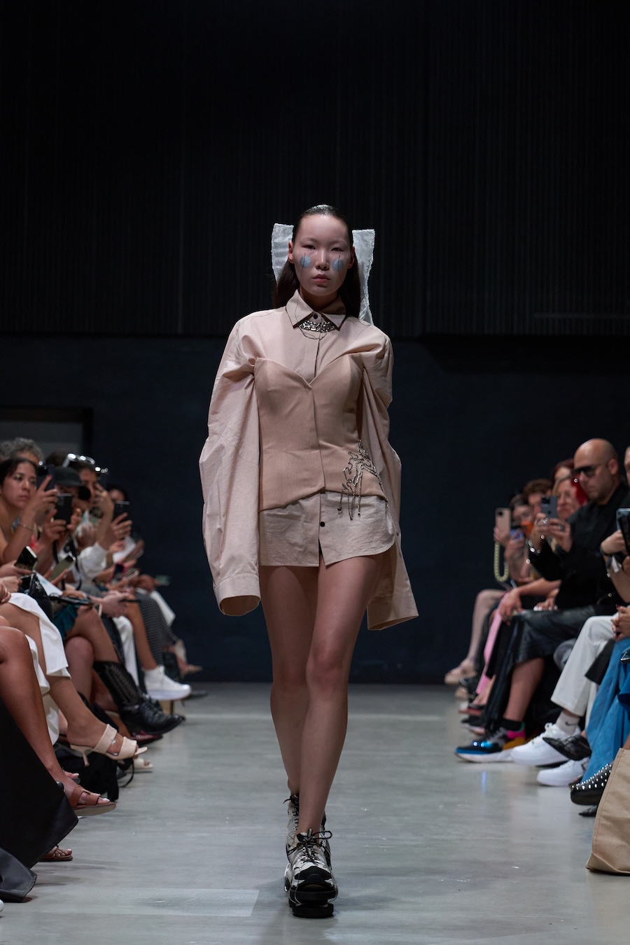 Photographer Shin Jeong Hoon took us backstage for an intimate glimpse into the heart of this collection, while Chelsea Claire captured the catwalk magic that filled the venue, the juxtaposition of structured silhouettes against flowing, voluminous forms echoed ruétz’s exploration of mobility and self-discovery.