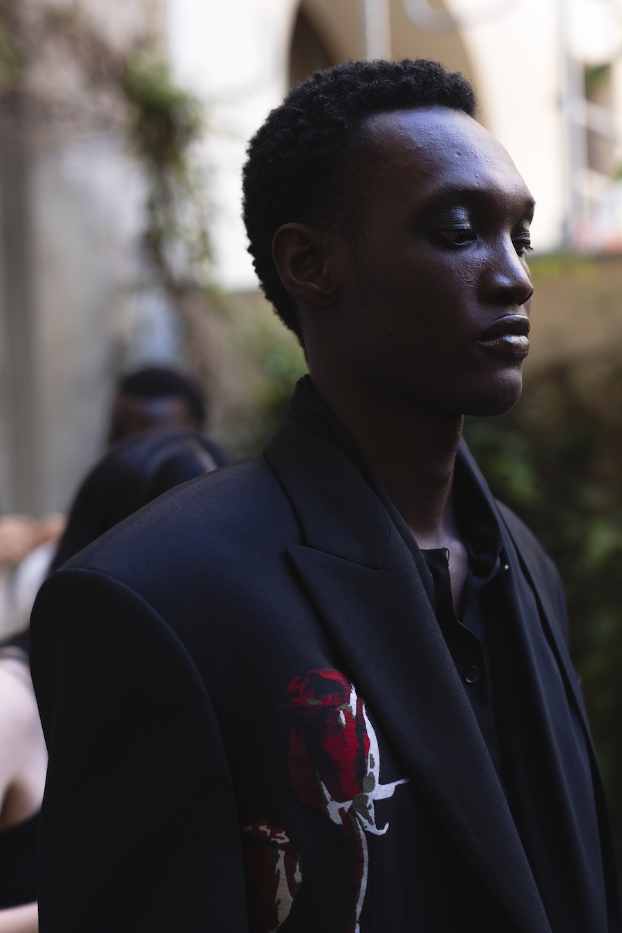 The designs are unified by floral motifs that dance between the literal and symbolic, celebrating the cyclical journey of growth and decay. Oversized blazers featuring stunning rose tapestry and intricate intarsia knits serve as a romantic nod to historical influences. Meanwhile, silk trousers and shirts, adorned with delicate handmade lace, create a magical fusion of intimacy and elegance.
