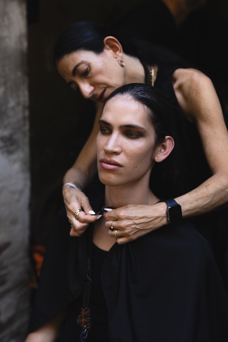 Photographer Anna Nowalska-Duda was our backstage eyes and lens, capturing every captivating moment of this presentation for our readers. Founded in 2014 by Jale Richert and Michele Beil, Richert Beil has made waves in the fashion scene with its inclusive and avant-garde designs that challenge traditional gender norms and reshape the concept of elegance and luxury. The brand’s signature aesthetic features precise, clean lines, sharp tailoring, and a striking monochromatic palette, each collection serving as a narrative that continues to evolve.