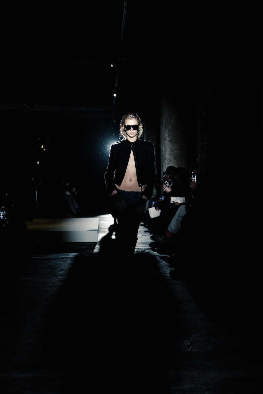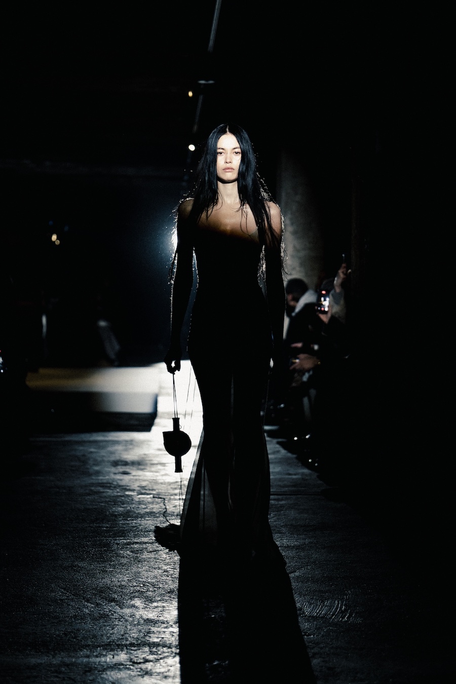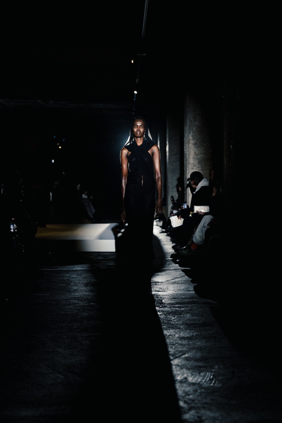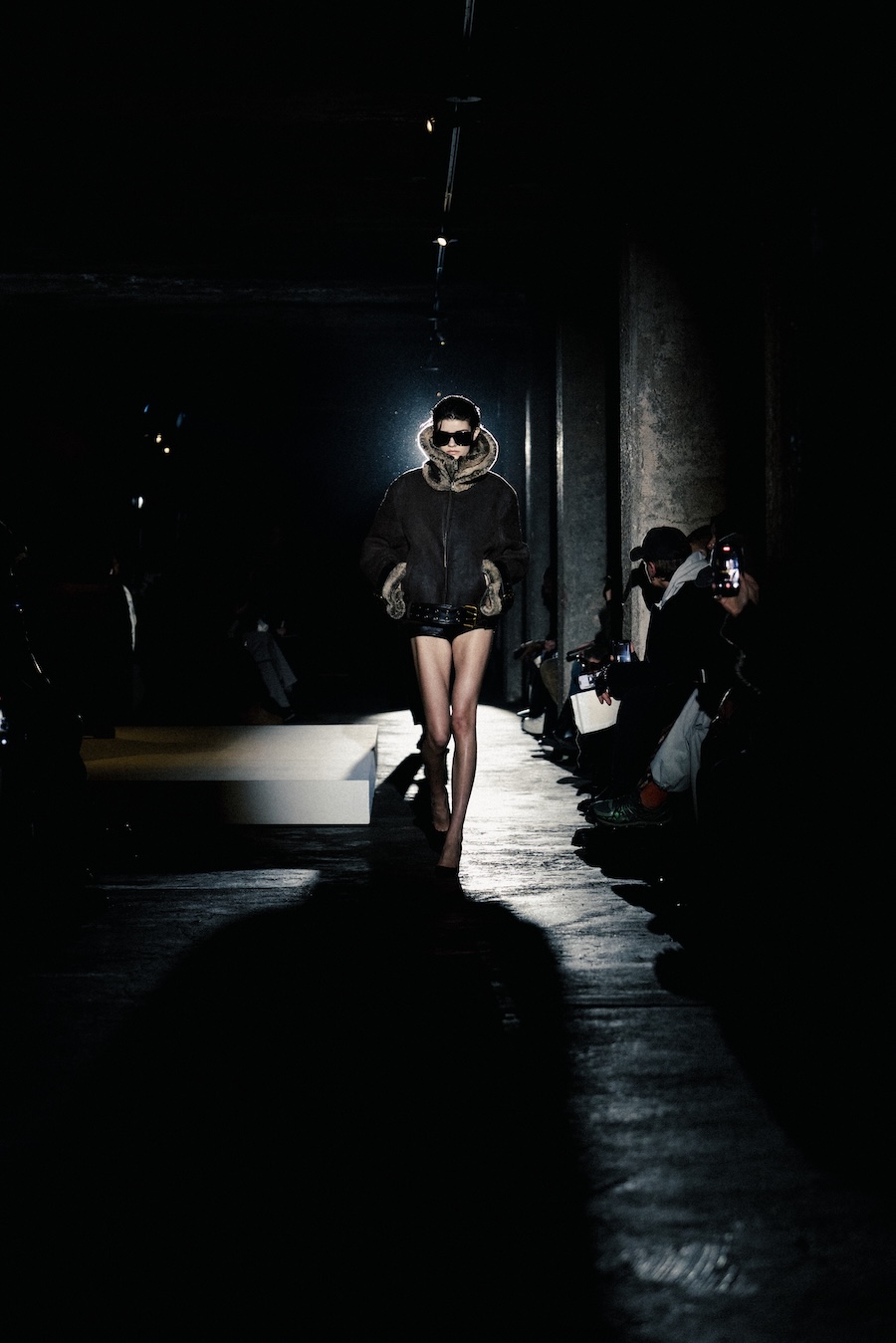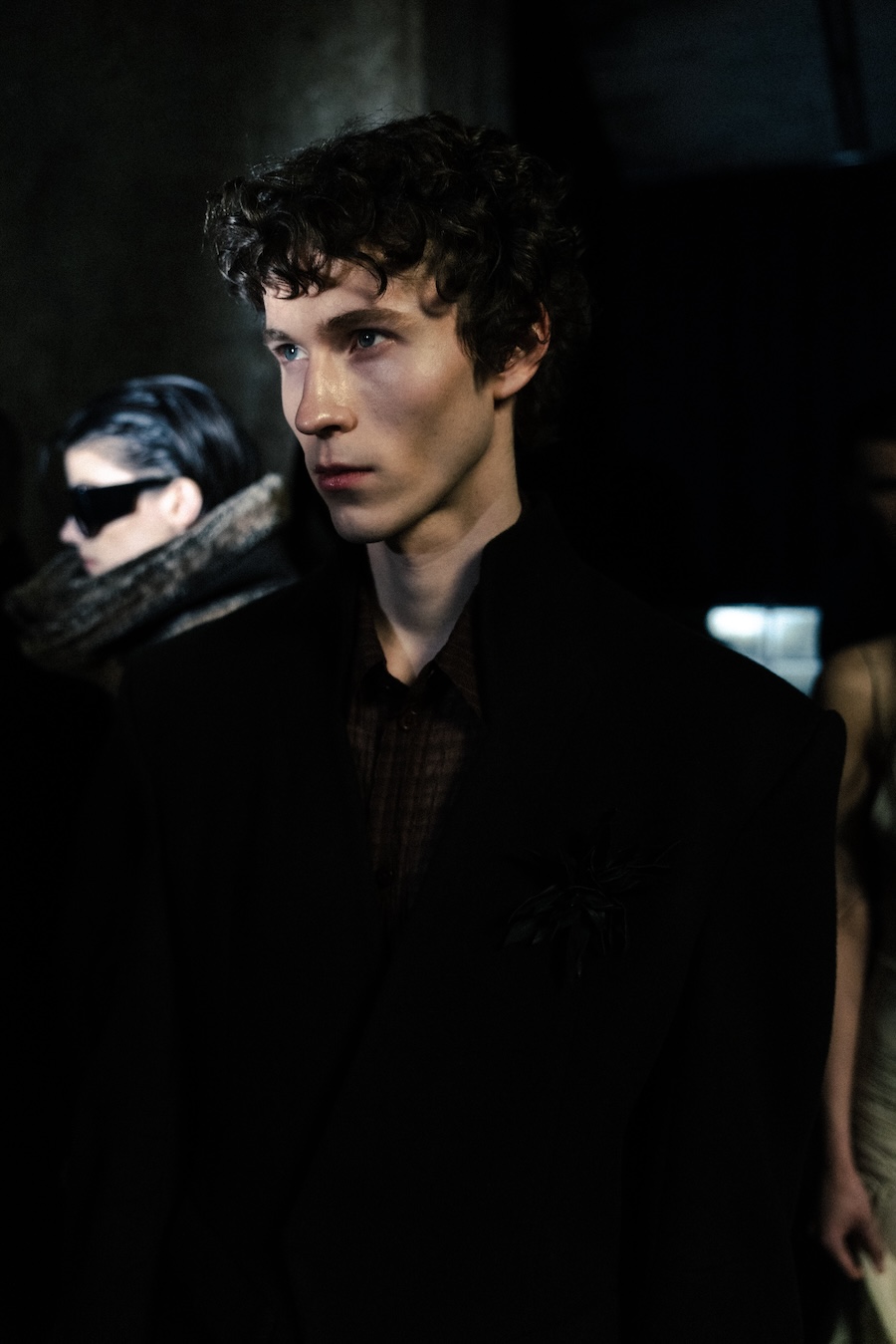 The runway experience was further enriched by a multisensory scent installation developed in collaboration with RYOKO. This innovative installation added an olfactory dimension to the show, with models carrying incense burners that gradually released a custom fragrance, culminating in a full aromatic experience that extended the presentation beyond the visual.