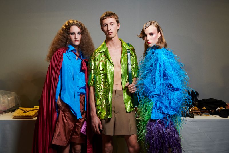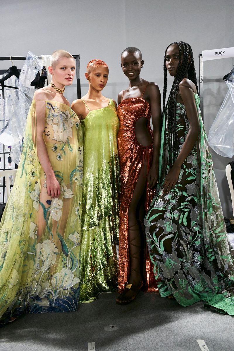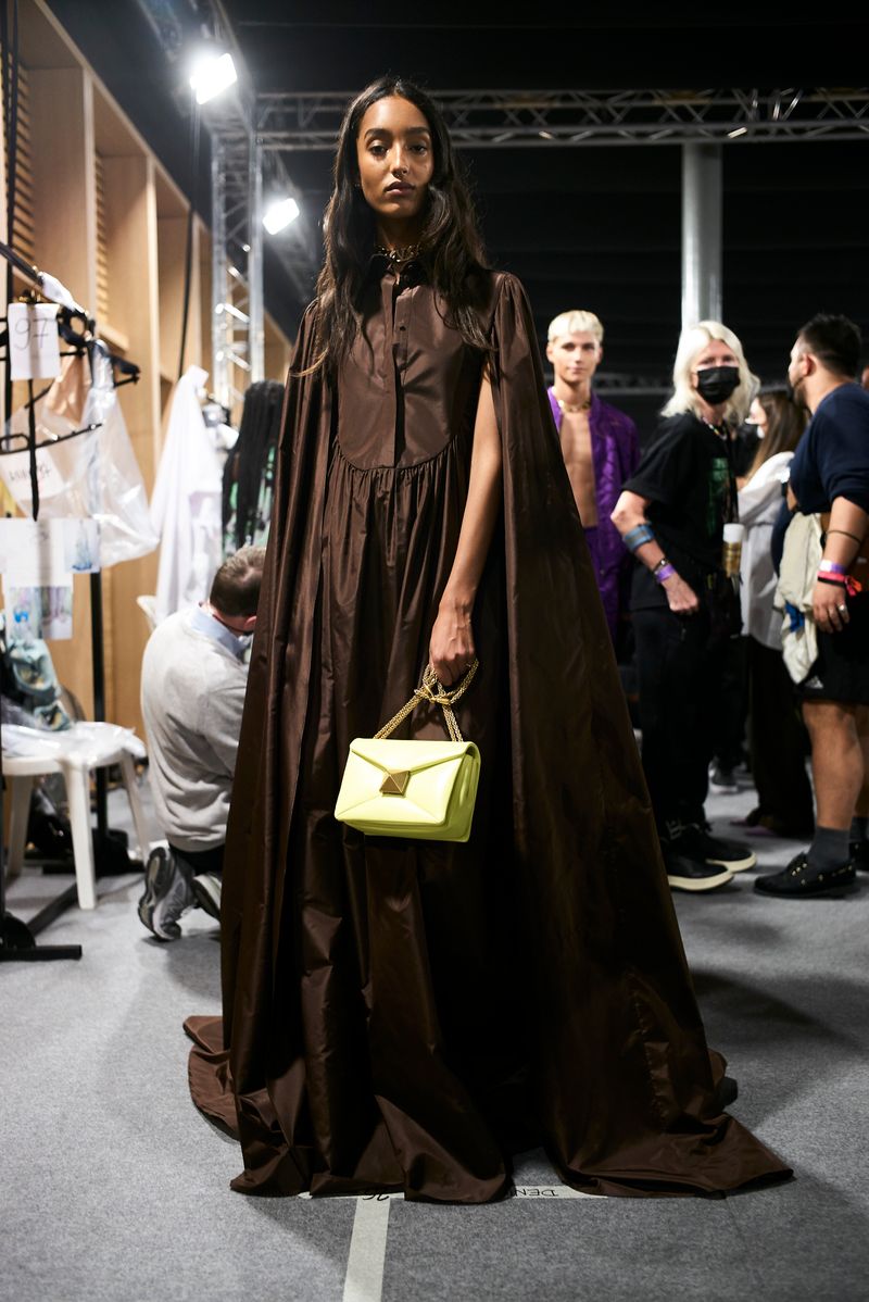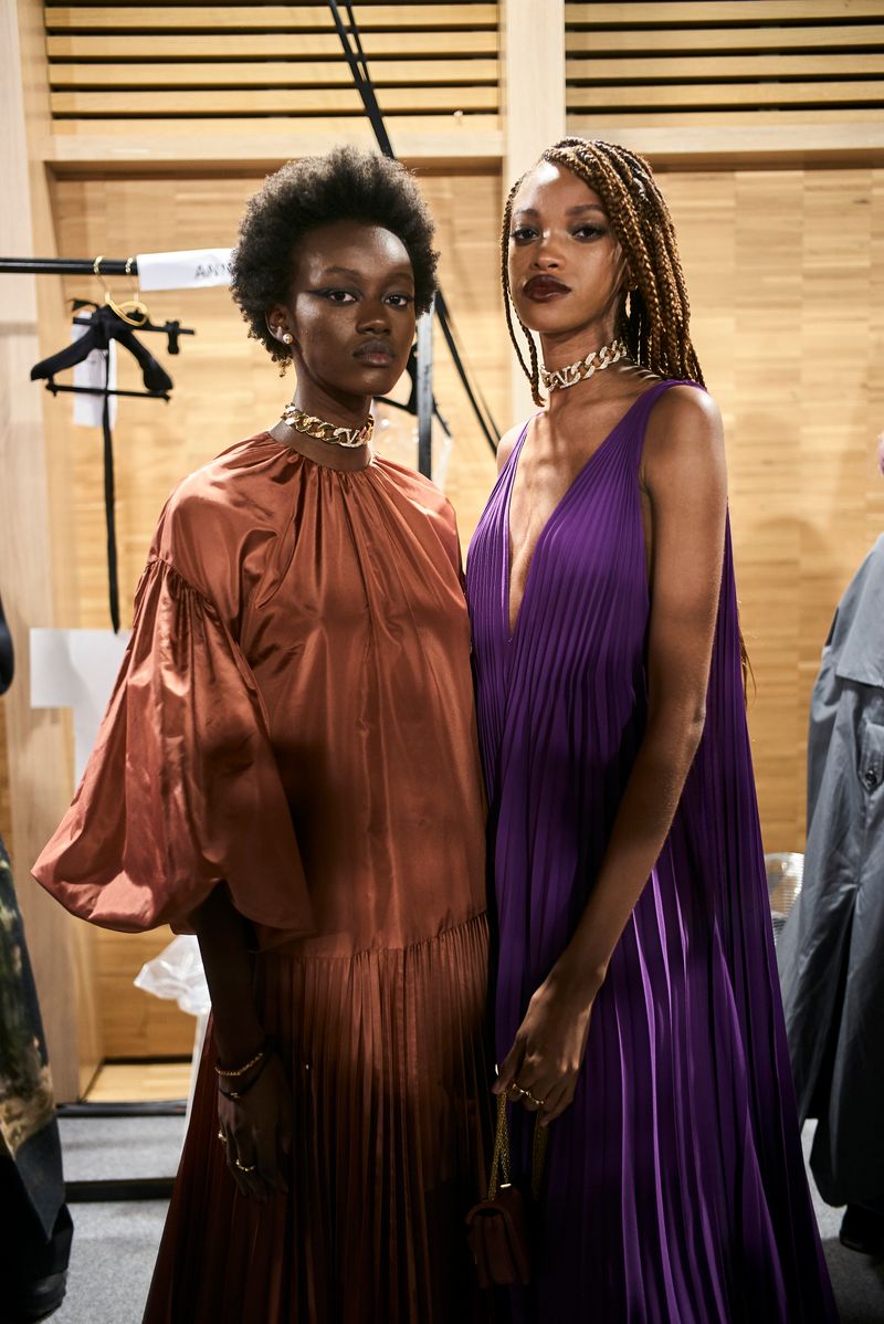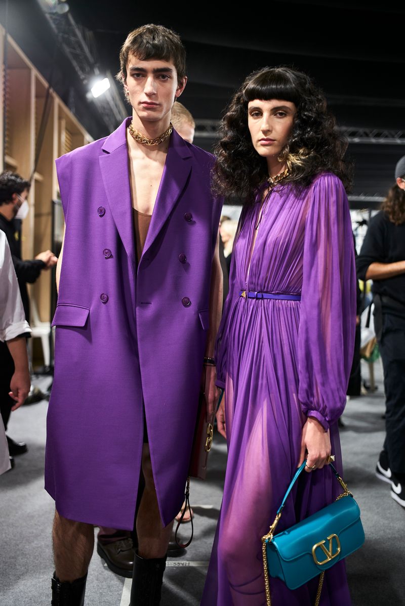 The path is made evident in the physicality of movement: on the catwalk, fashion, worn by individuals, arrives after a tour and a detour through alleys and sidewalks. The inversion of meaning is all the more evident and powerful as the elements of the Valentino vocabulary are clearer. Some even come, as they are, from the archive: icons of the house re-edited with philological accuracy and labeled Valentino Archive to travel through space and time, encountering today’s physicality and ways of being.