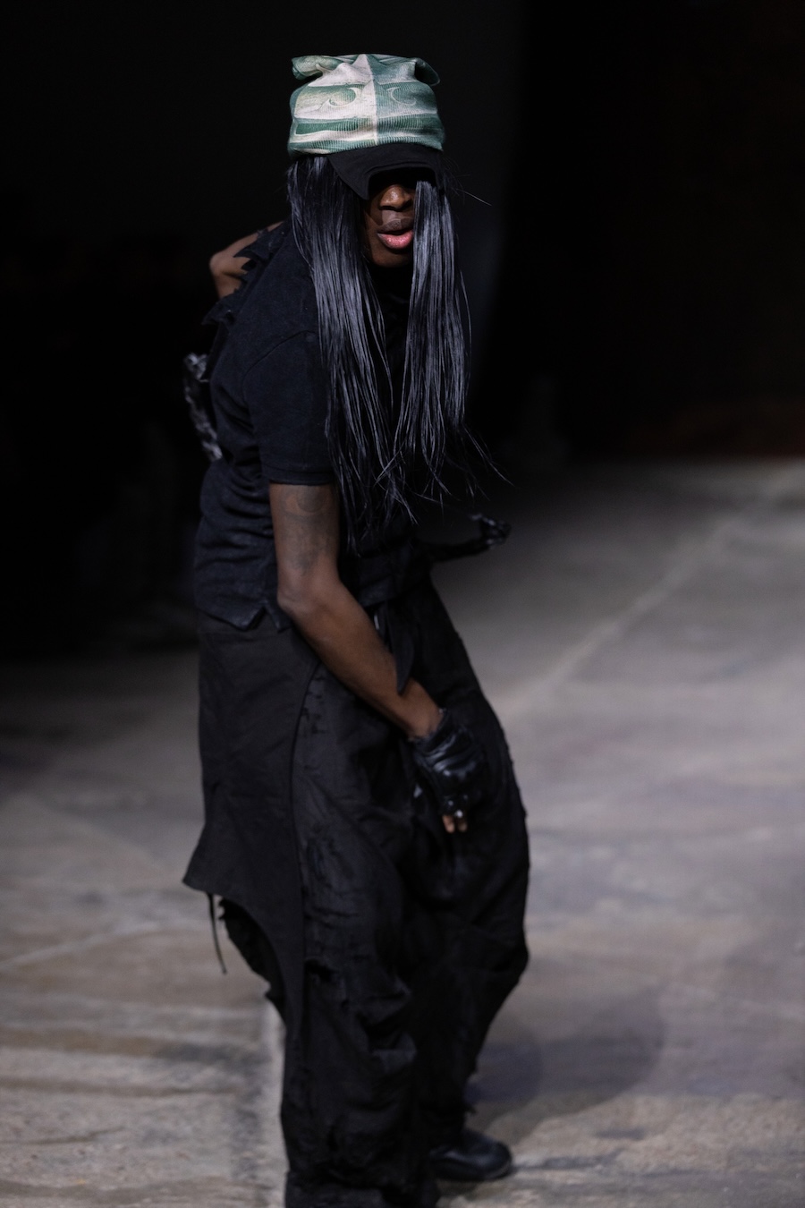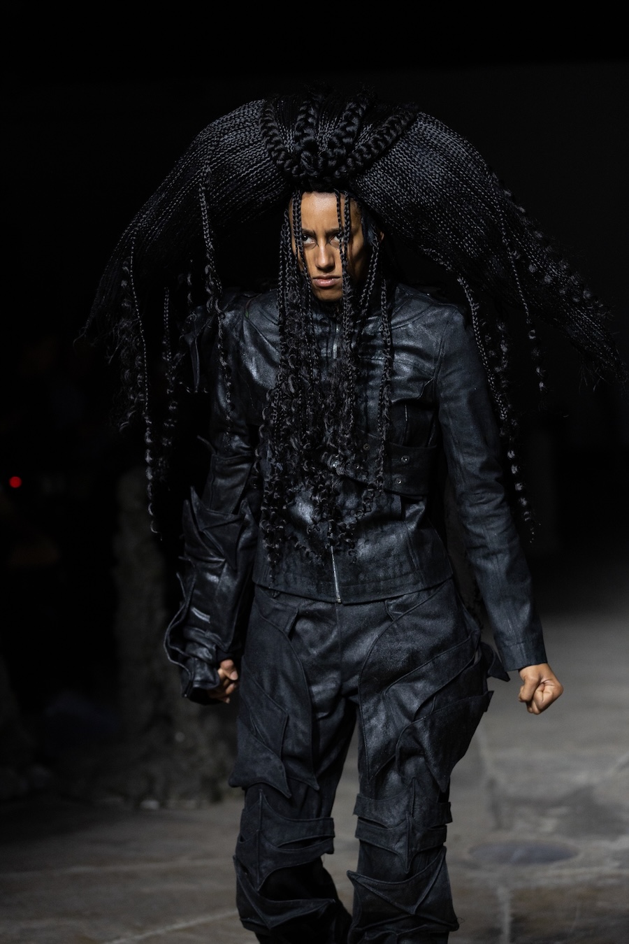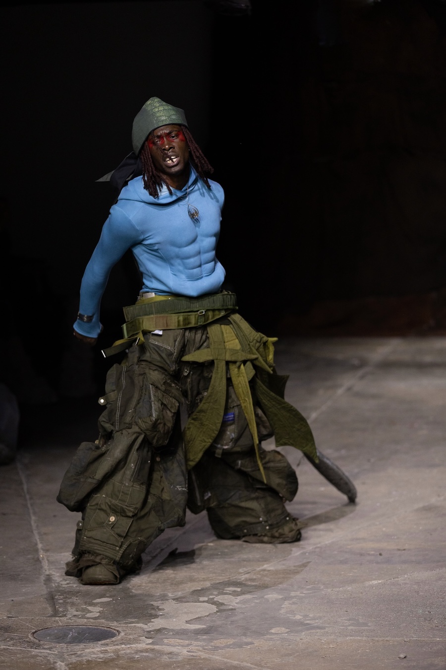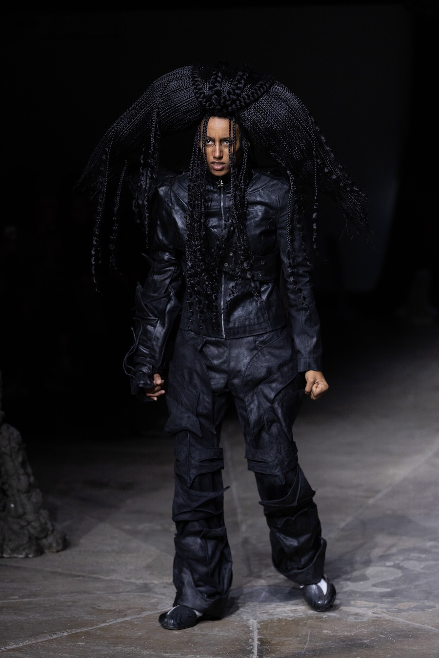 For the latest collection, Stapleson moved to the catwalk format for the first time with “A Ground to Stand On.” This sixth chapter departed from the training grounds of previous seasons, venturing into themes of pre-colonial Caribbean resistance, thus bridging the gap from preparation to lived reality. This evolution reflects YAKU’s commitment to using fashion as a narrative tool, expanding the storytelling through performance, space, and intricate world-building.