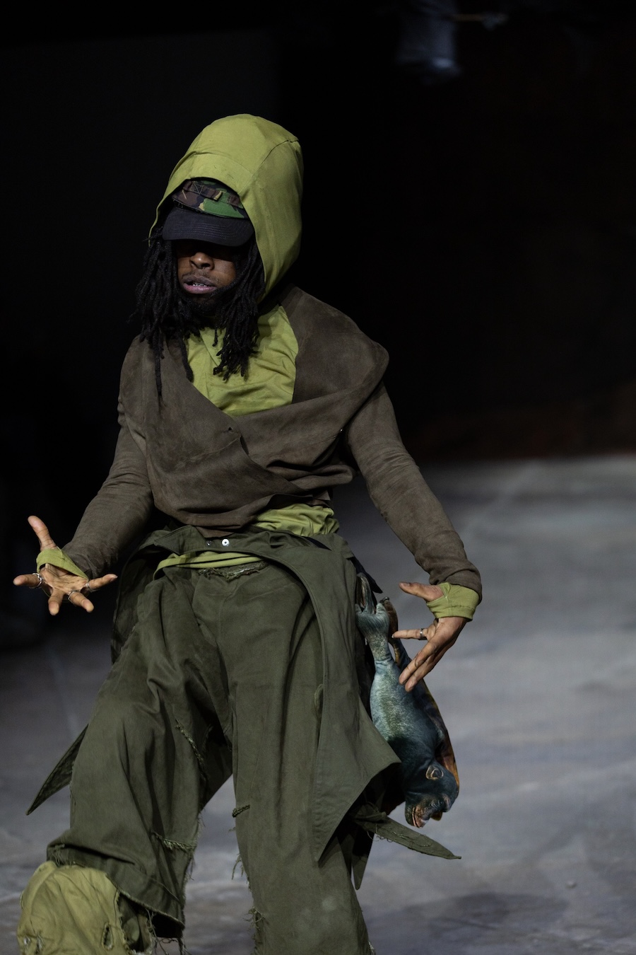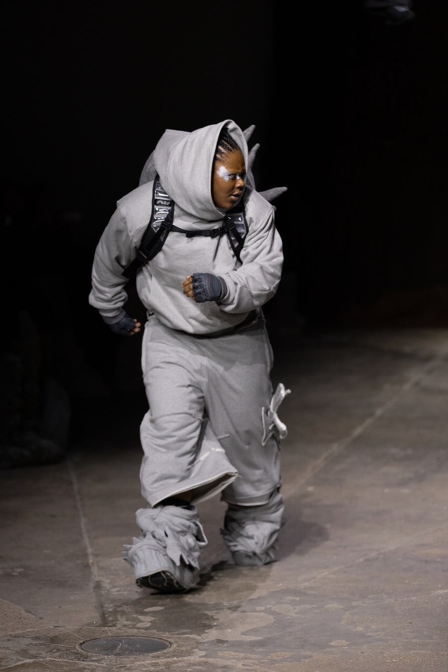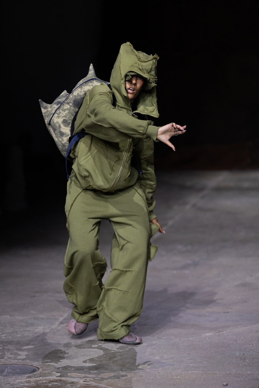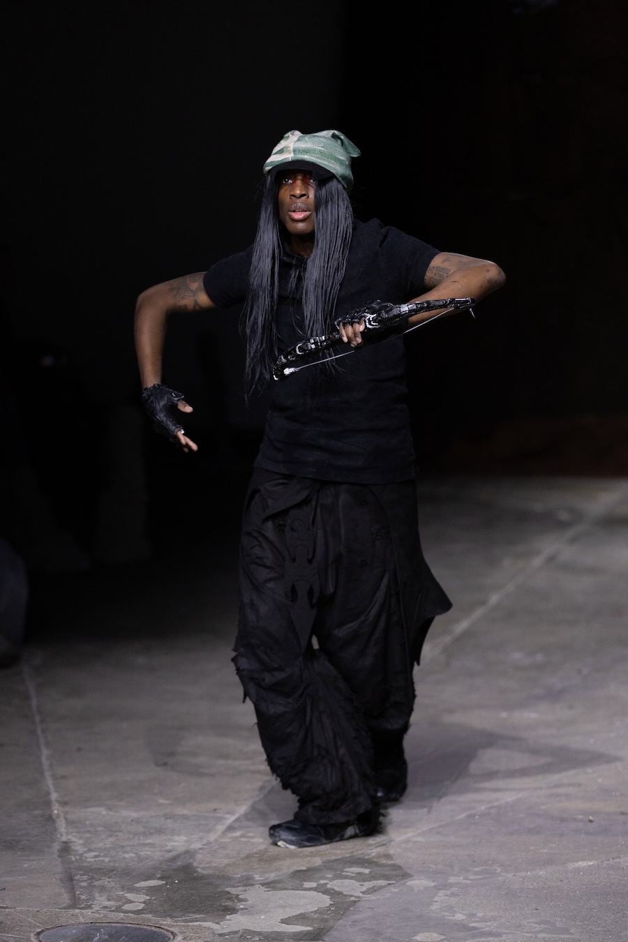 For the latest collection, Stapleson moved to the catwalk format for the first time with “A Ground to Stand On.” This sixth chapter departed from the training grounds of previous seasons, venturing into themes of pre-colonial Caribbean resistance, thus bridging the gap from preparation to lived reality. This evolution reflects YAKU’s commitment to using fashion as a narrative tool, expanding the storytelling through performance, space, and intricate world-building.