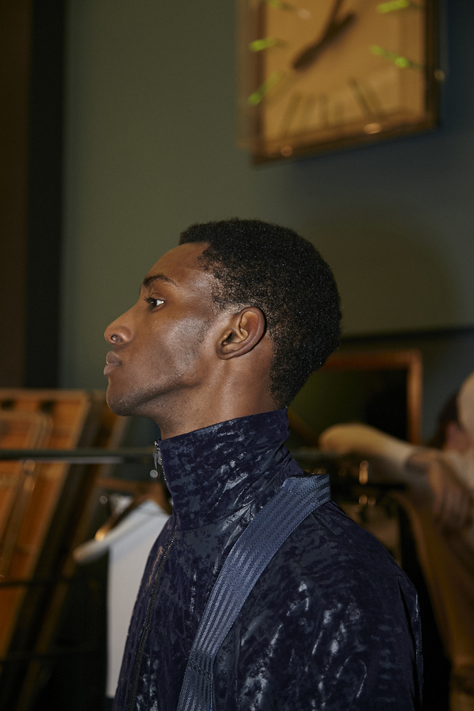 #LondonFashionWeekMen´s – Fashion brand Cottweiler was kind enough to invite our UK fashion editor backstage at their Autumn / Winter 19 show. This season see’s Cottweiler working in industrial elements along side beautiful lux textiles in rich blue and grey tones. Were obsessed with the makeup and hair inspired by cave dwelling creatures (we were told on the day) but ultimately its a glossy gel smeared over the models ears, hand and fringes.. such a fresh and forward thinking concept. Love! #LFWM