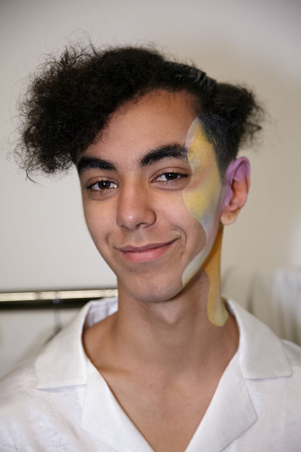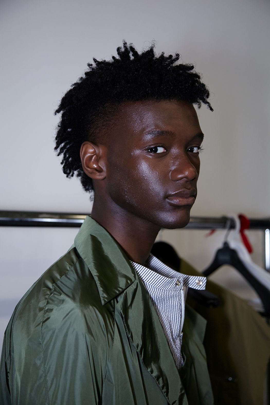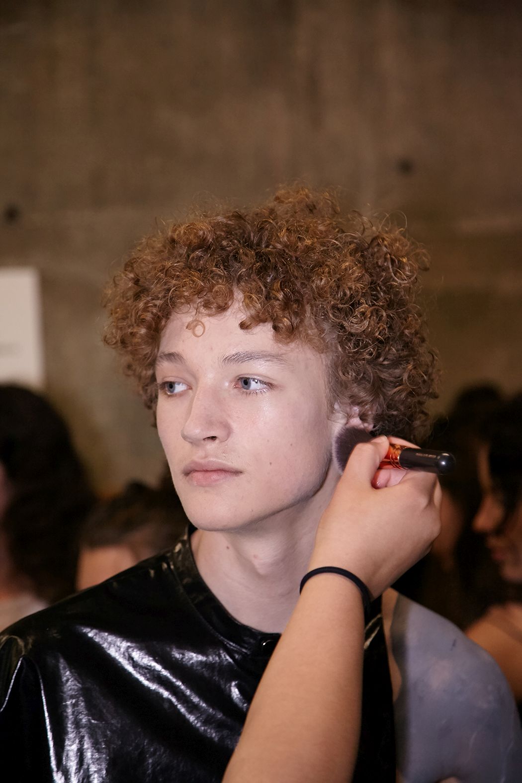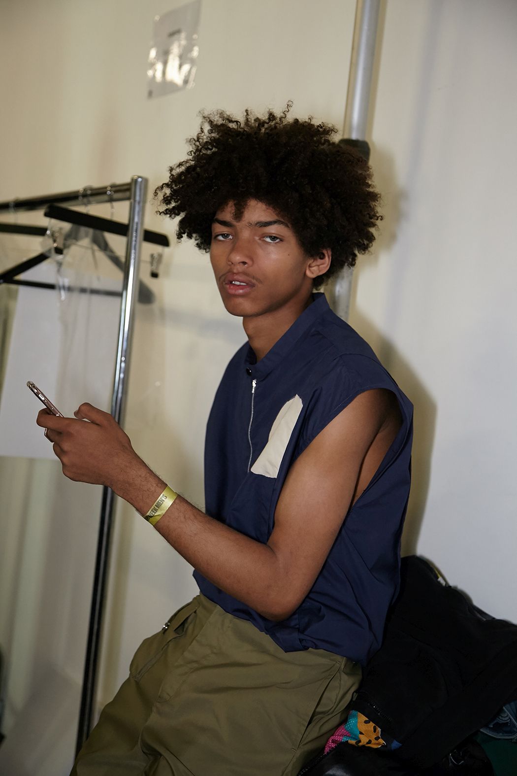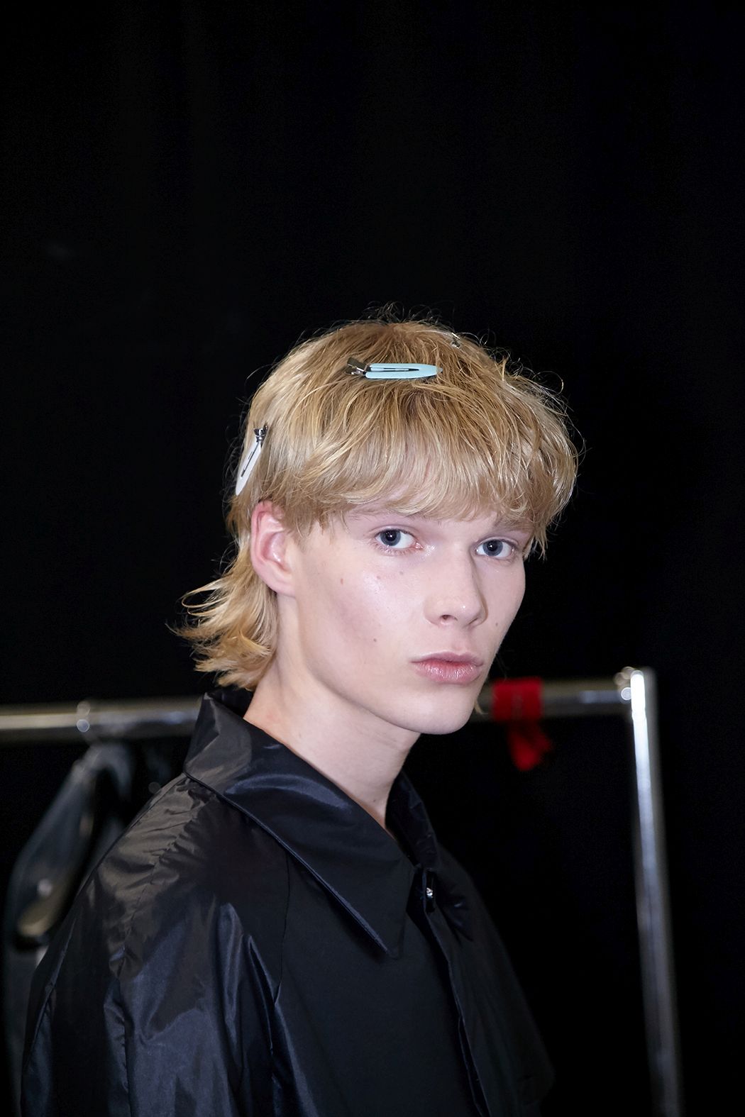 Playing with boxy and oversized silhouettes, contrasted with sensual cut-outs exposing the male body, alongside silky shirts, loose legged trackies and hi-sheen, glossy fabrics. Showcasing sensibility, authenticity and vulnerability, whilst even letting the odd nipple loose. You’ve got my vote. Free that nipple!
