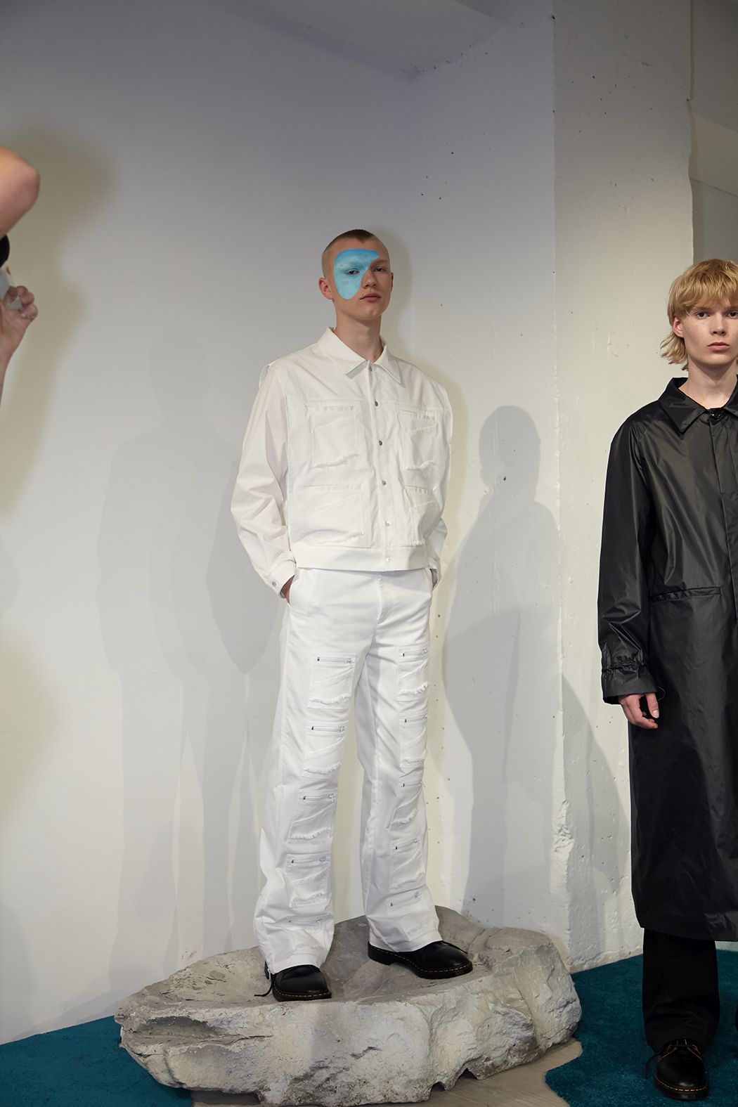Exploring the nuisance of the modern male life with a focus on the broad spectrum of masculinity, design duo Danxiu Liu and Shanpeng Wong of DANSHAN wanted to emphasize an emotional man for S/S19. Photography by Karl Slater. Text by Lewis Robert Cameron.