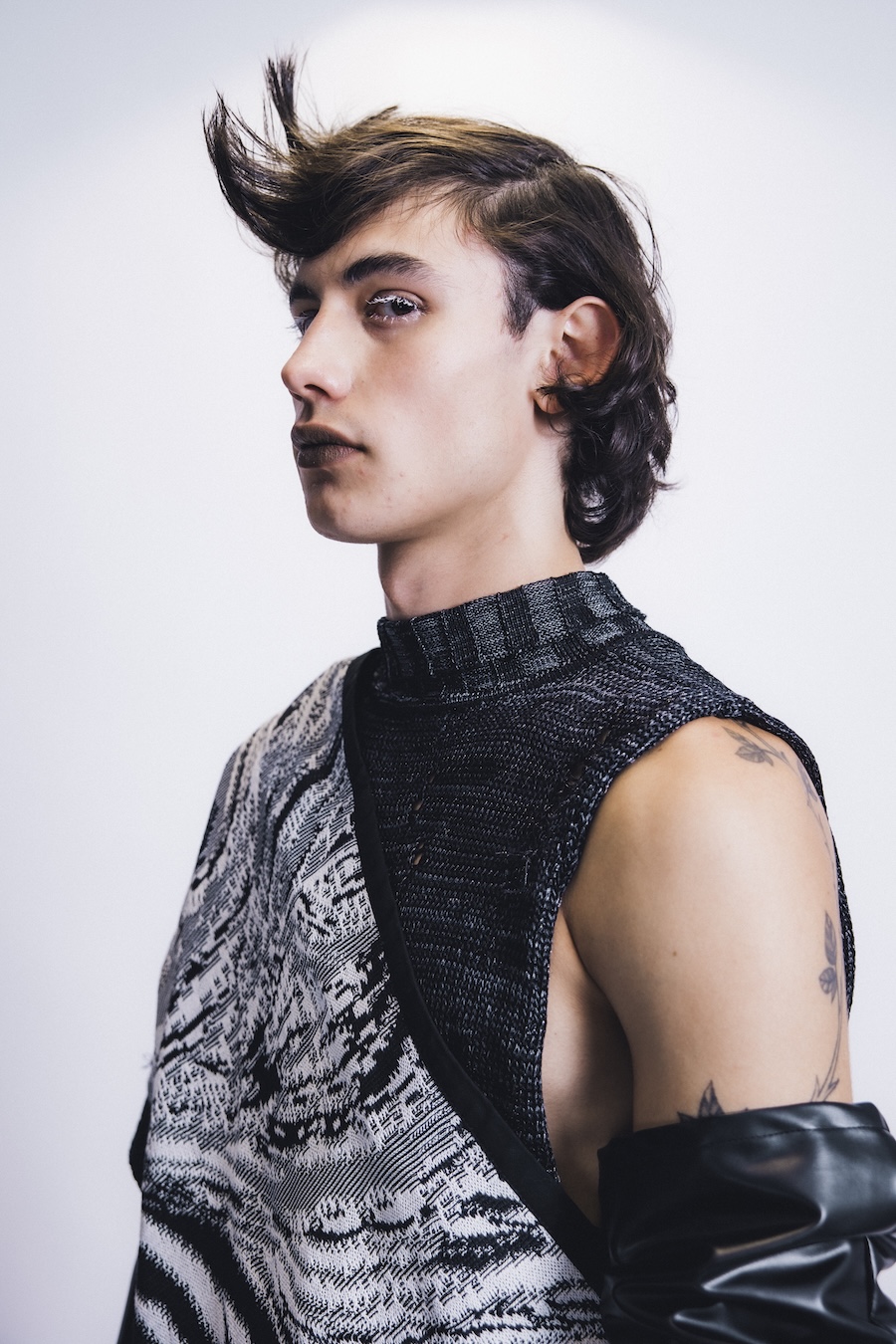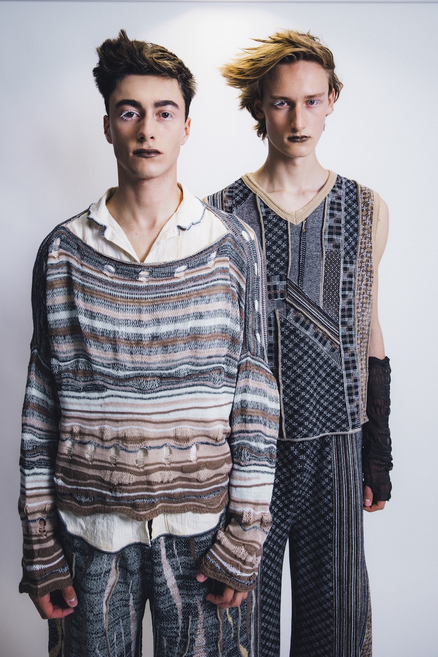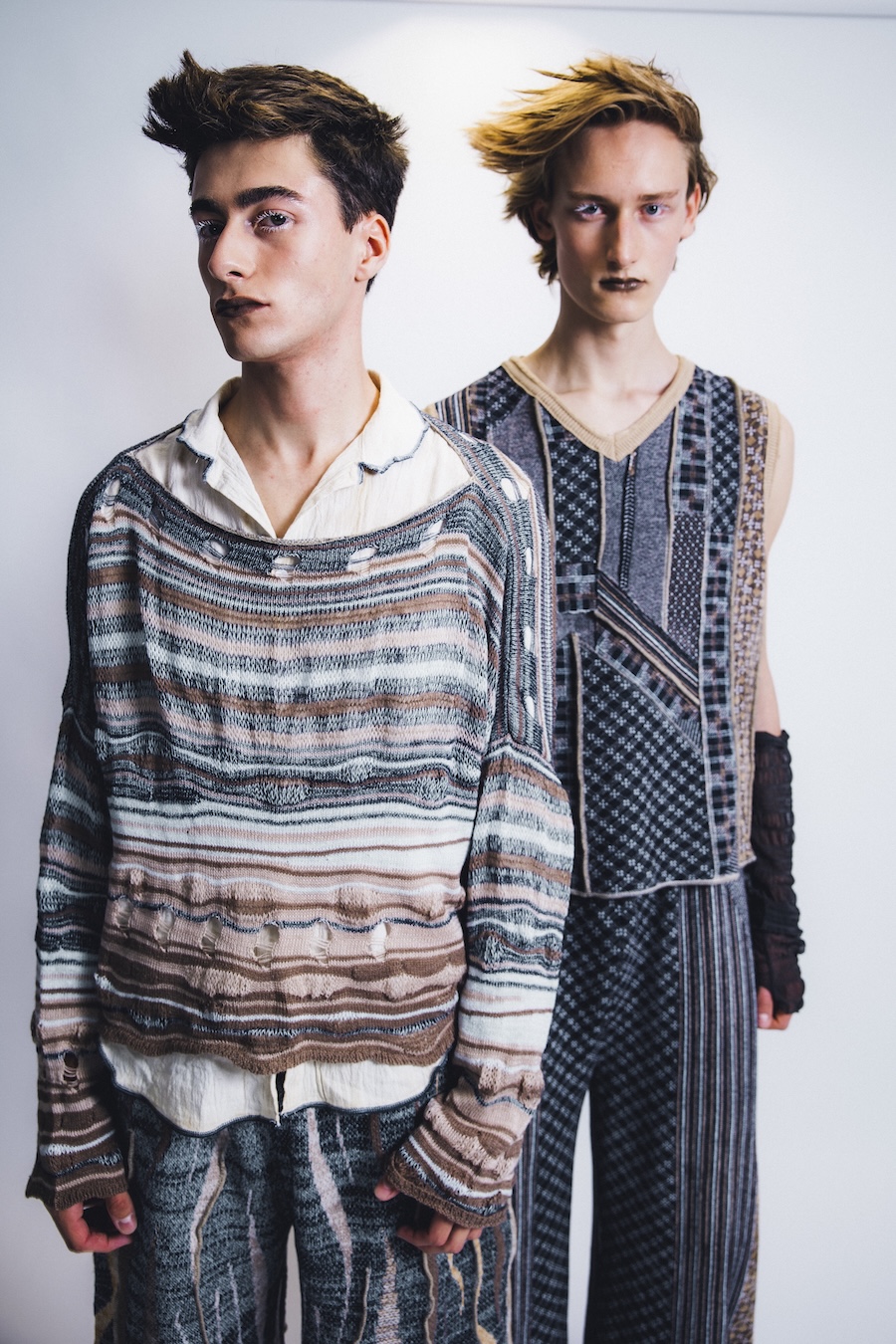 Kuo is basically a textile archaeologist. His collection Sedimentation takes the slow build-up of rocks, memories, and moments and traps them in sweaters. Knots become timelines, stitches become fossils. It’s like wearing the strata of the earth, except, instead of crumbling limestone, it’s soft, sculptural knits that look like future relics.