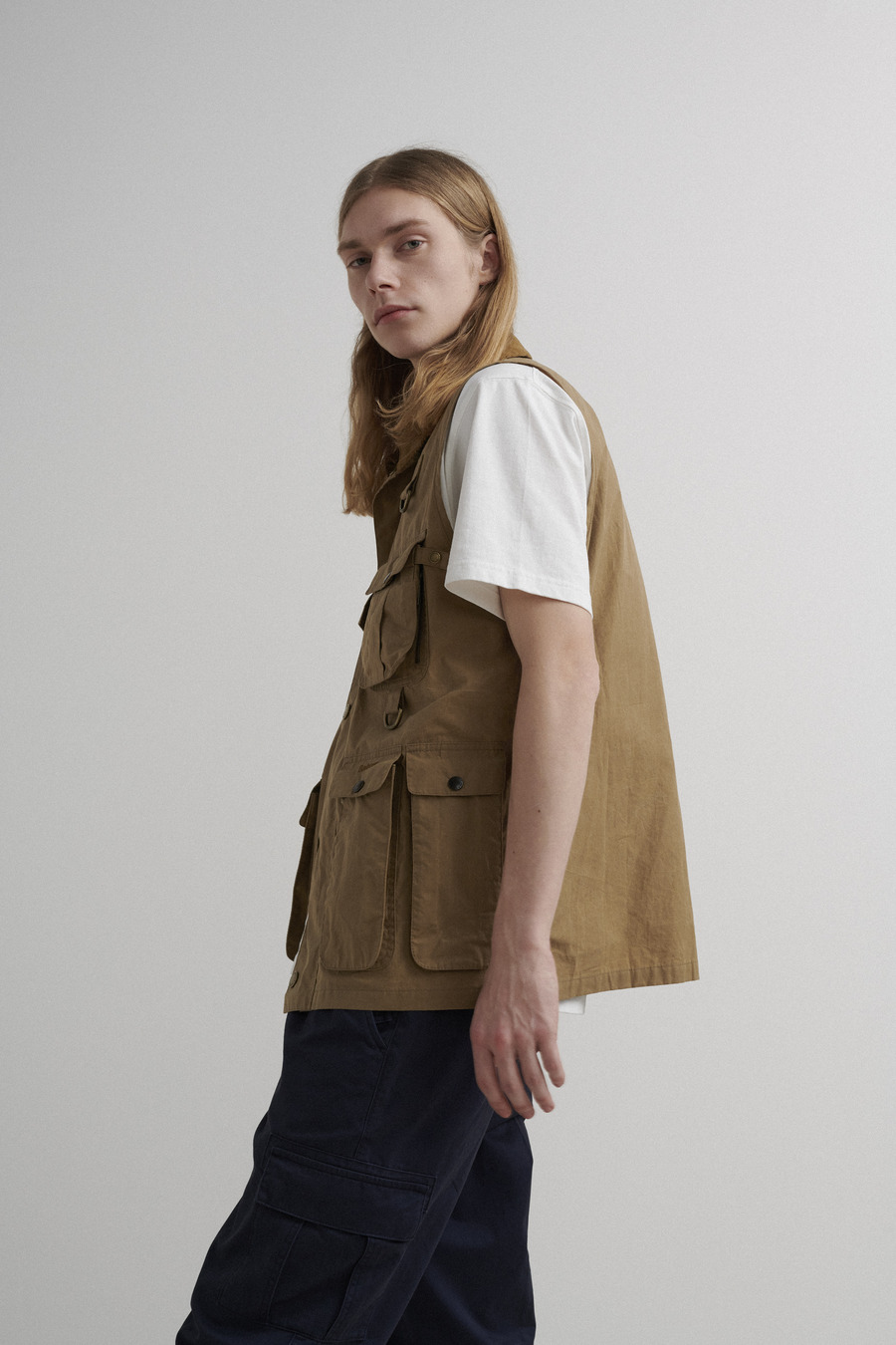 Venturing outdoors, the Barbour Modified Transport Vest, rendered in dusky green or golden khaki, nods to the brand’s rugged countryside spirit, reinvented to meet the dynamic rhythms of today’s lifestyles. It’s a piece that marries the functional heritage of the Spey fishing vest with the zest of the present.
