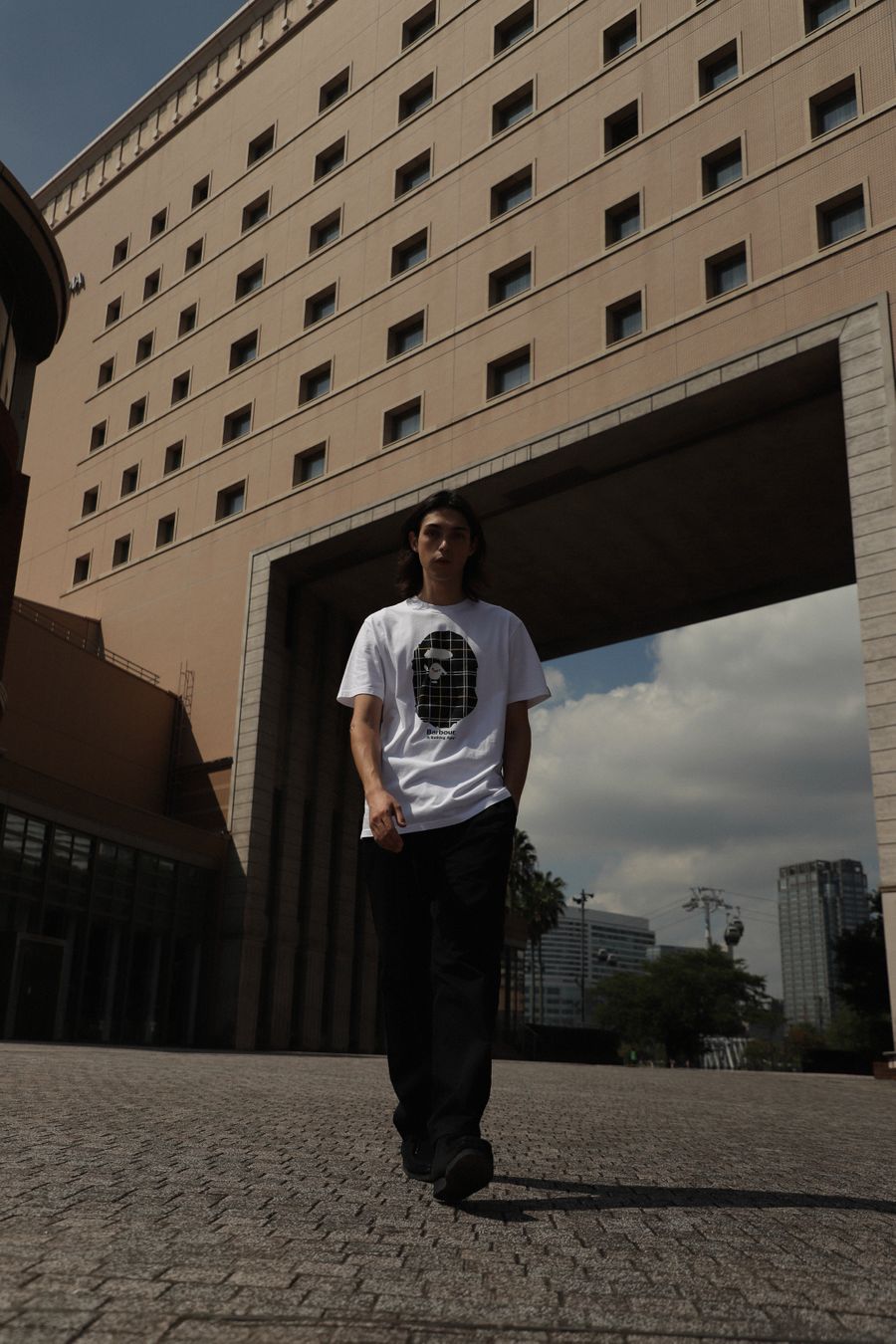 The Barbour BAPE® Tee comes in three colours, Black, White and Burnt Olive – the design features a tartan BAPE® ape head logo.
