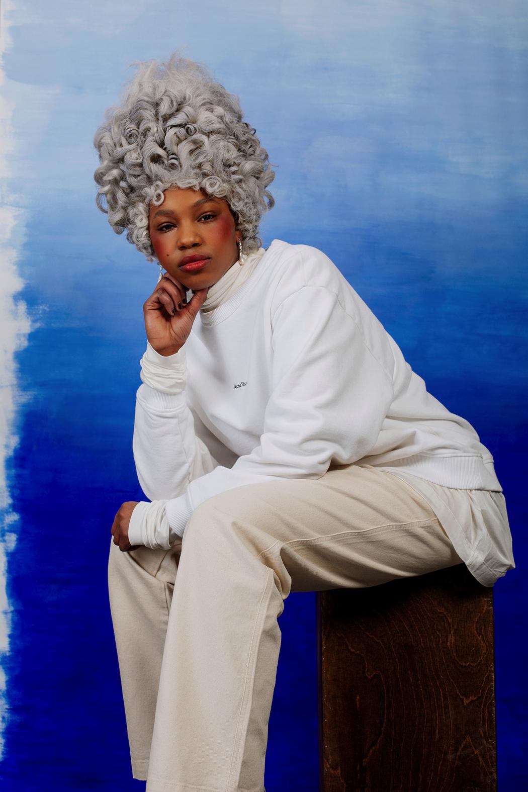 “For this particular shoot, I wanted to create a mash-up of 90s streetwear with 17th and 18th-century beauty standards. I also wanted to showcase those beauty standards on BIPOC models that never get to represent or play in that sphere.”