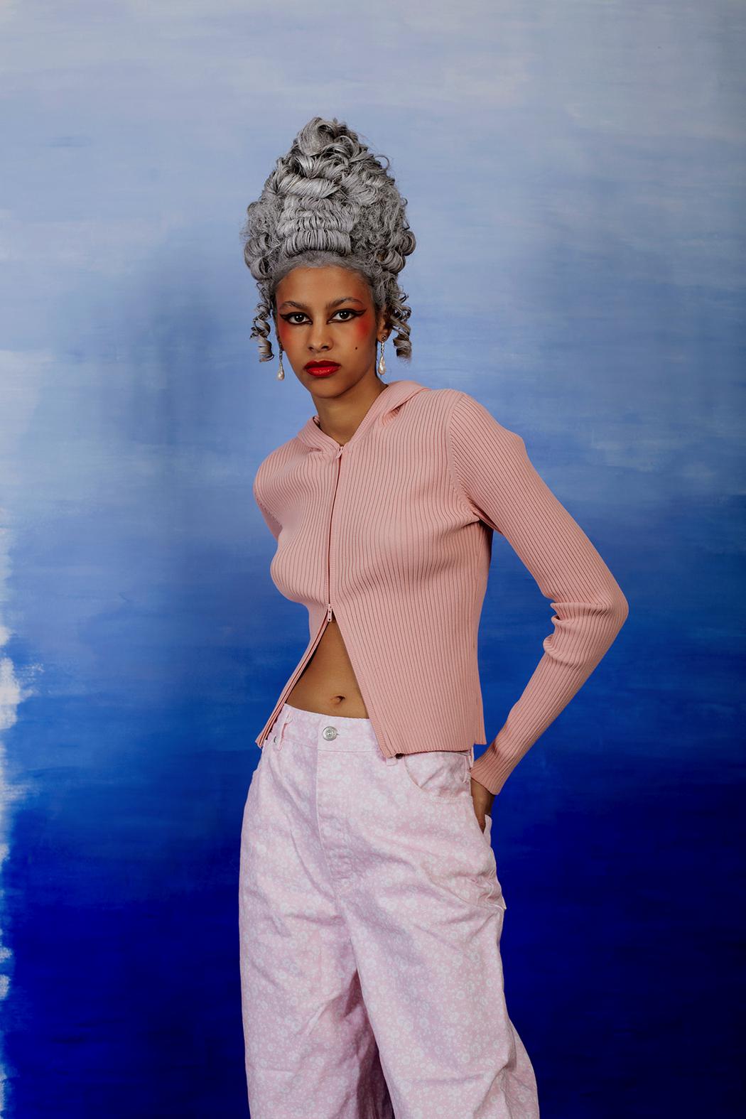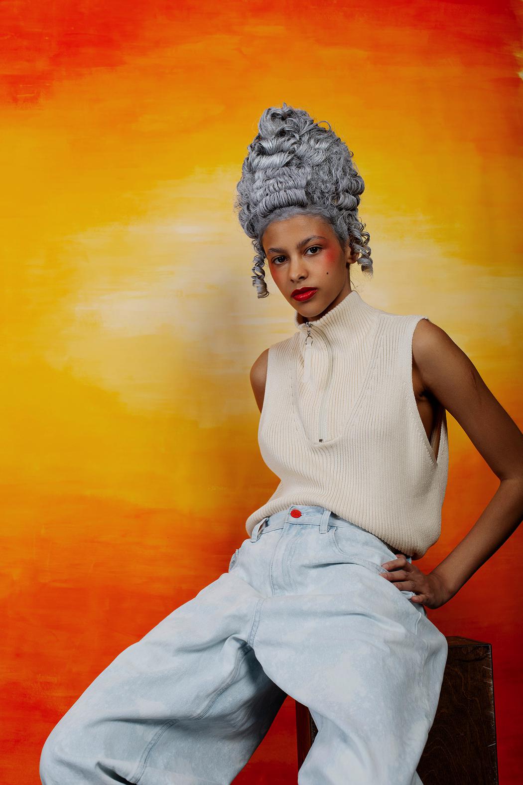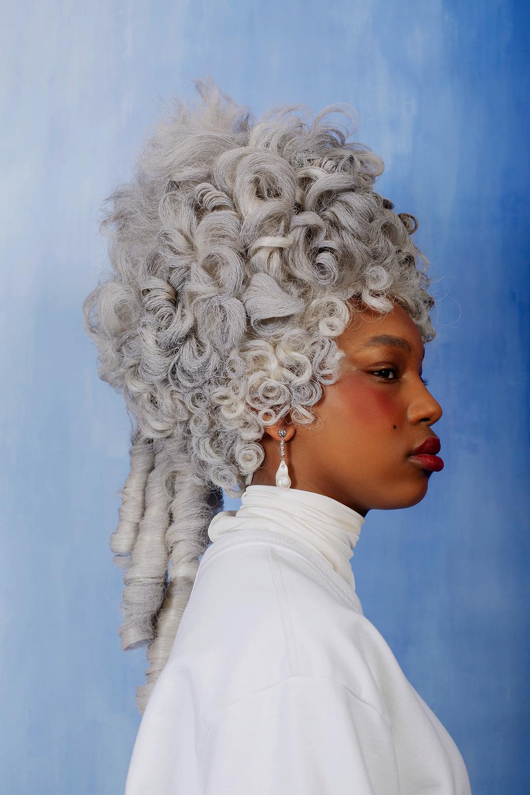 “For this particular shoot, I wanted to create a mash-up of 90s streetwear with 17th and 18th-century beauty standards. I also wanted to showcase those beauty standards on BIPOC models that never get to represent or play in that sphere.”