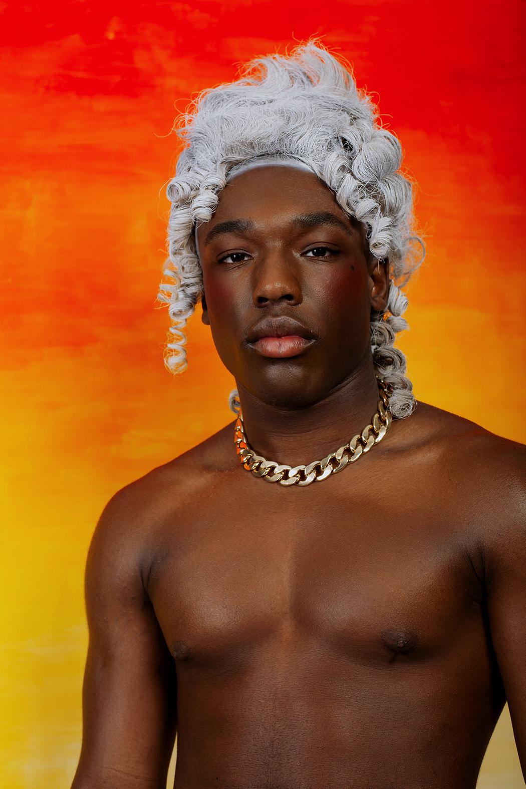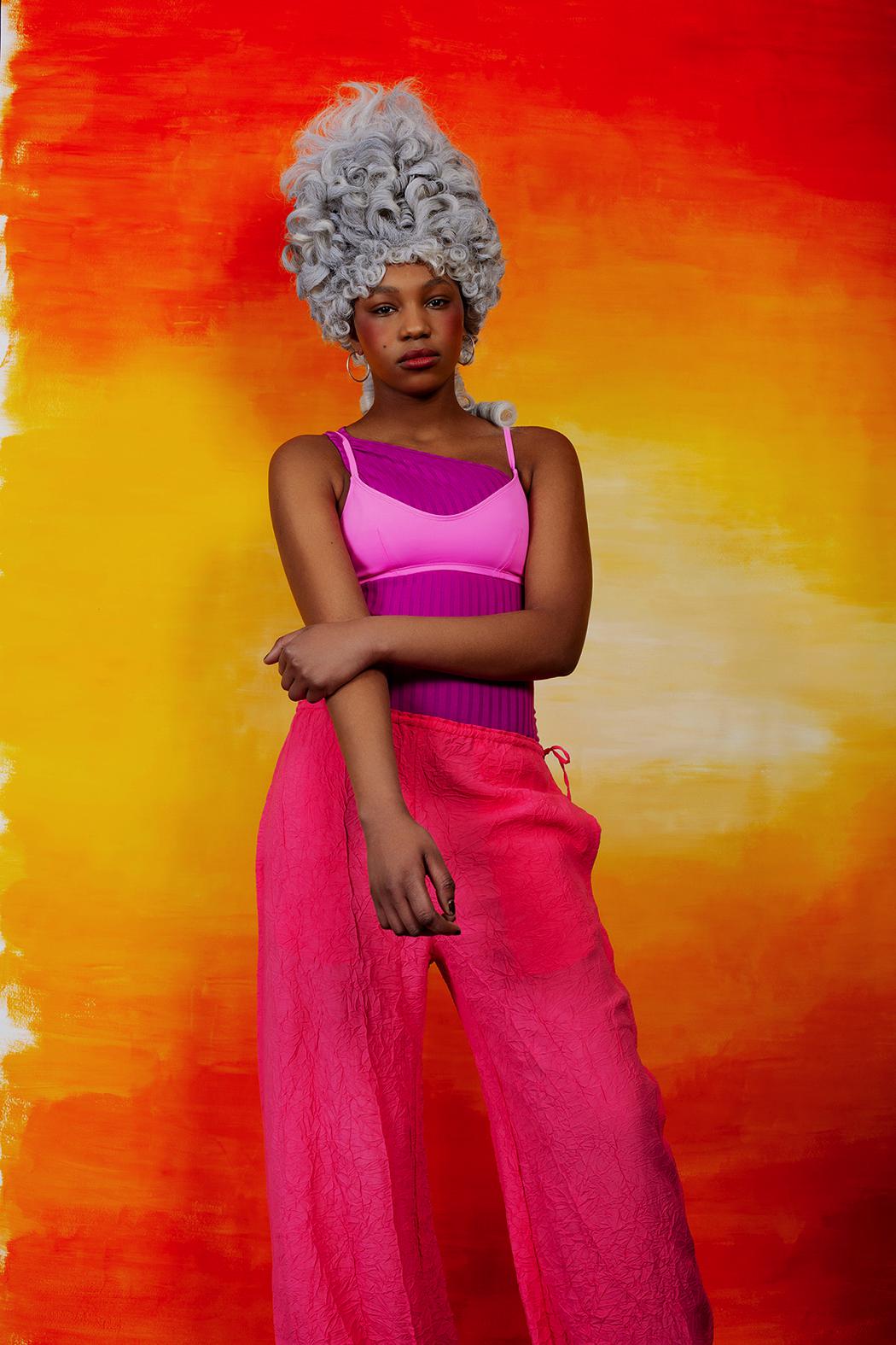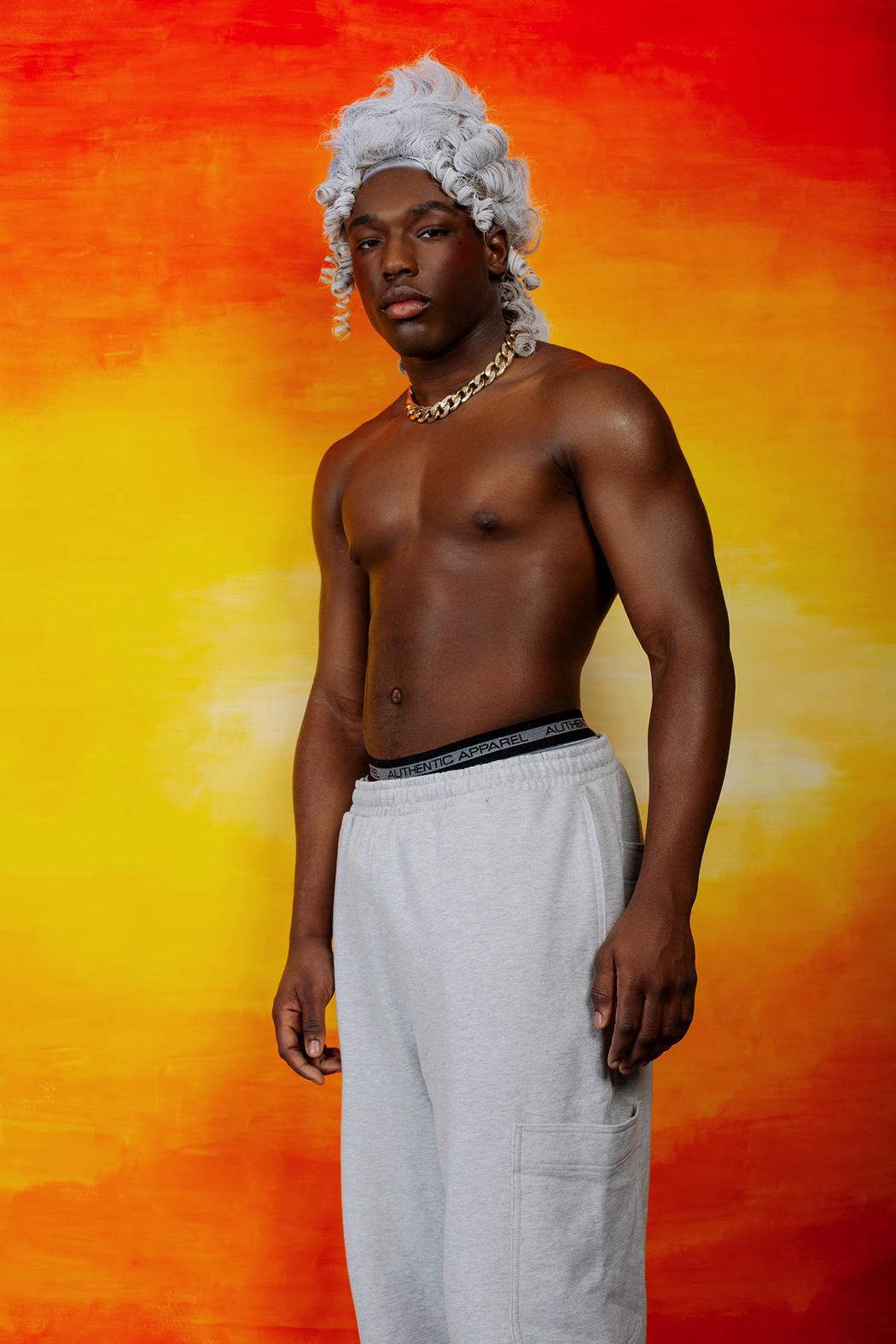 “For this particular shoot, I wanted to create a mash-up of 90s streetwear with 17th and 18th-century beauty standards. I also wanted to showcase those beauty standards on BIPOC models that never get to represent or play in that sphere.”