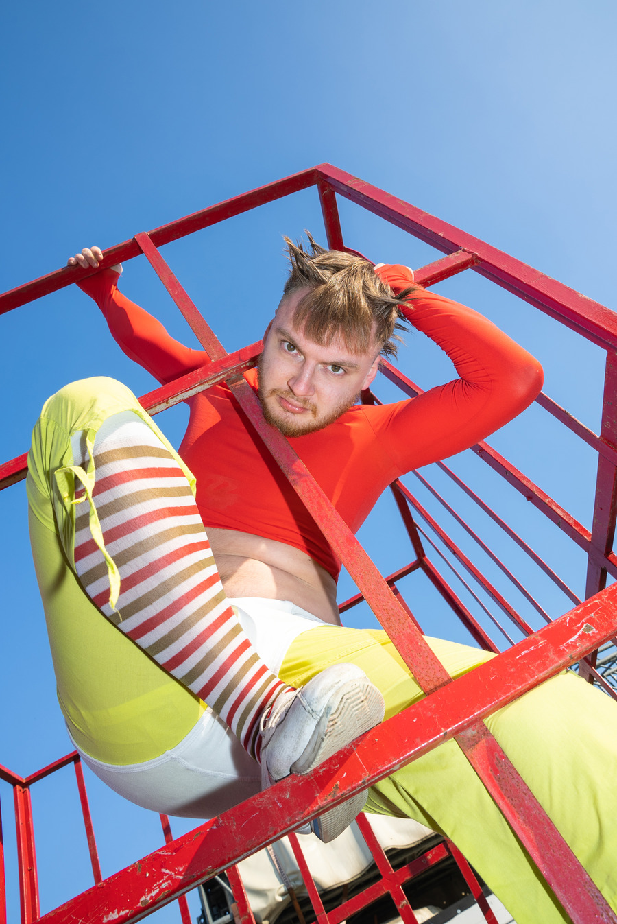 Here the idea of representing the mirror of all the emotions that are commonly or not associated with Easy, in the place in which these emotions, for the same reasons as Easy, are not associated. We find him, first of all, happy, as everyone knows, and then he descends into desperation and passion, passing through dissatisfaction, anger and boredom. The styling links the subject and the location with an ironic flavour in a riot of colours and patterns, typical of circus culture.”