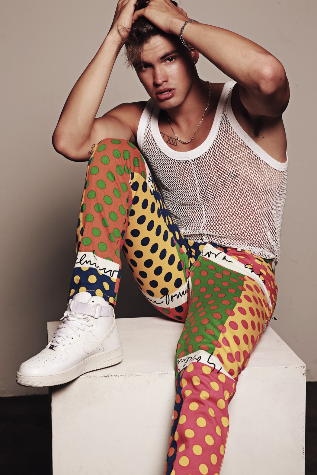 A KALTBLUT exclusive. Model Ben Crofchick represented by DT models Los Angeles lensed by Santiago Bisso. Fashion by Adidas, Jeremy Scott, Moschino, Levis, Nike.