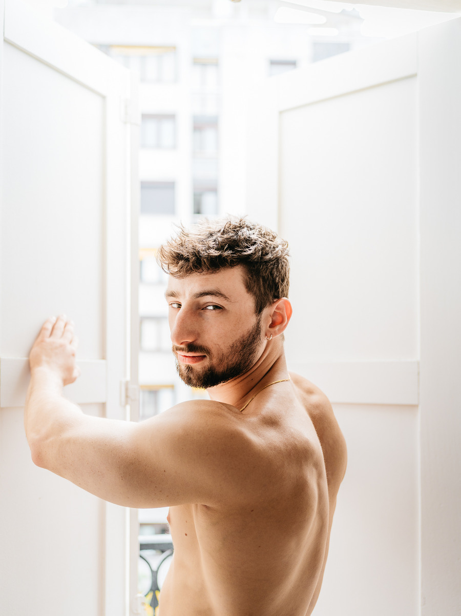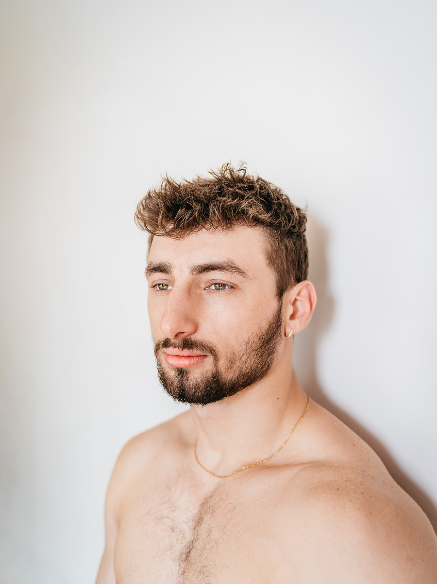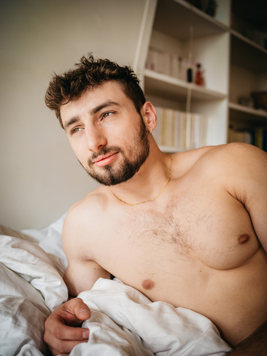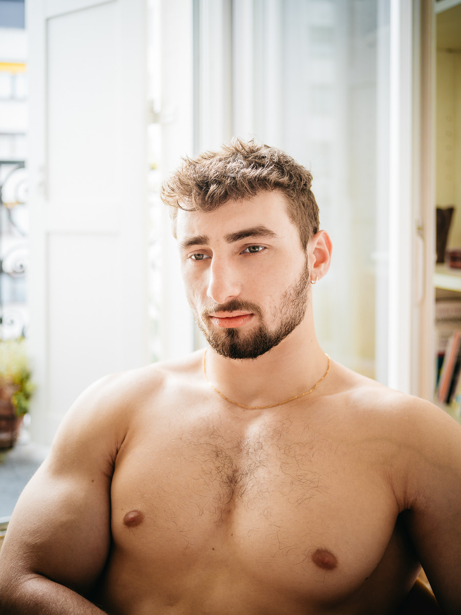 A KALTBLUT exclusive. Photography by panchoassoluto. The model is Benoît Mangin. panchoassoluto is a portrait photographer who lives on a farm in the North Rhine-Westphalian forest. His artistic work is characterized by personal series that reflect his identity. A central theme of his work is the documentation of LGBTIQA+ farmers in Europe. He has also realized projects with fathers and sons and is currently working on a series about the gay movement of the 70s and 80s as the mother of the queer movement.