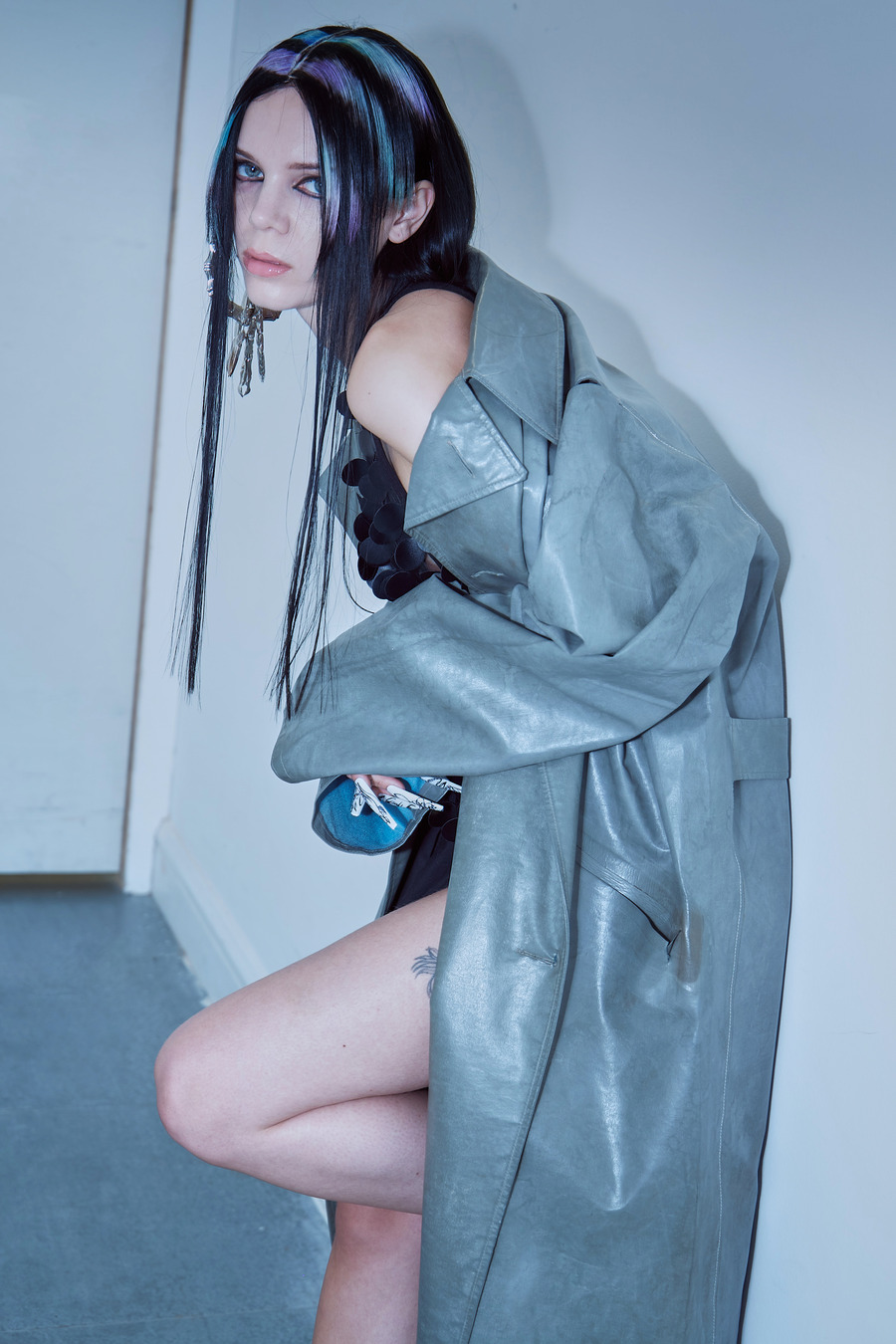 A KALTBLUT exclusive by Catherine Rasanto and Eomji Sim, and their team. “Berlin After Dark” unveils the visceral heartbeat of Berlin’s nightlife, captured through a vivid visual odyssey with a tight-knit group of friends. This exclusive editorial delves into the electric ambience, from neon-soaked streets to the shadowy depths of underground clubs, where daring, avant-garde fashion entwines with the city’s nocturnal rhythm.