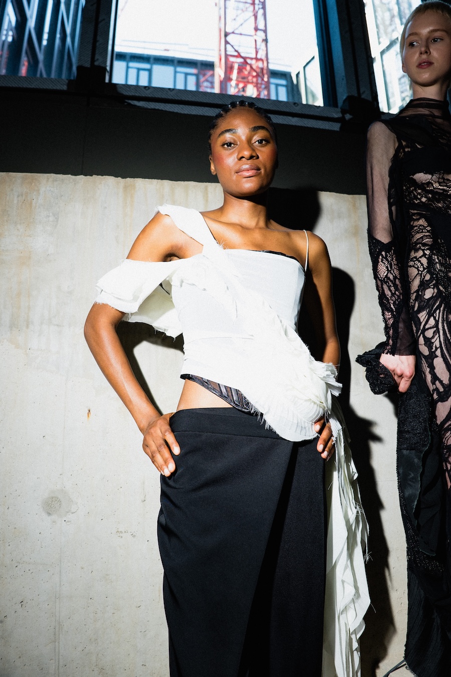 The runway pulsated with the creative energy of 14 visionary designers hailing from fashion schools across Germany, each presenting three distinct looks that artfully encapsulated their diverse narratives. Accompanied by a bespoke soundtrack sizzling with flair, courtesy of Klaus Stockhausen, the runway transformed into a vibrant tapestry of sculptural tailoring, deconstructed elegance, and bold silhouettes. It was a celebration of contrast and harmony, all passionately woven together by a shared goal: to grant enduring visibility to the fashion pioneers of tomorrow.