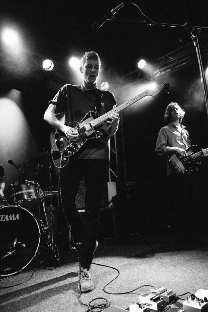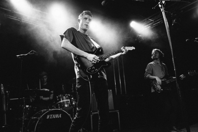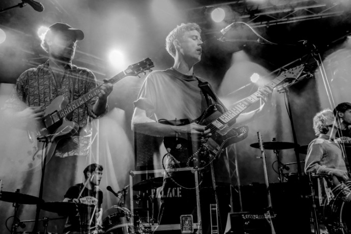 New music is on the horizon for British three-piece Palace, who stopped by Berlin’s Frannz Club earlier this month. They have been tucked away writing songs, including one titled “Berlin” and have just released a solemn single titled “Heaven Up There. Palace’s music evokes a certain nostalgia. A nostalgia that is not necessarily connected to a time or a place, but rather a familiar feeling. This is partly conjured up through frontman Leo Wyndham’s croons, which flow over tides of guitar melodies. Their live show, however, is anything but melancholic. The audience swayed, cheered, and impassionately sang along to “Bitter,” “Live Well,” “It’s Over,” and more from their first release.”