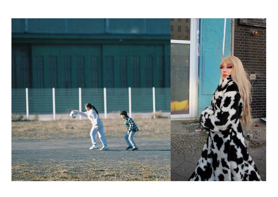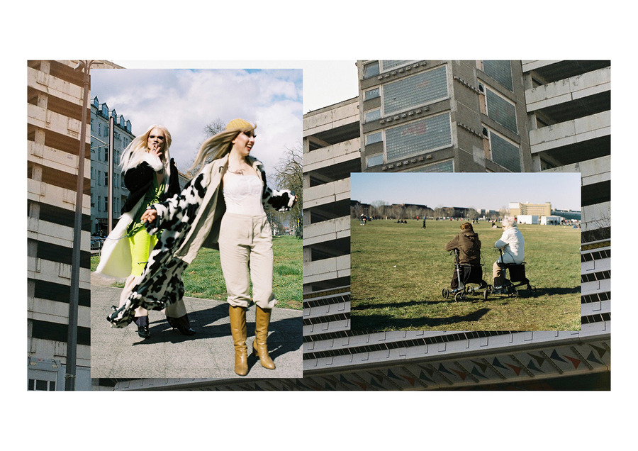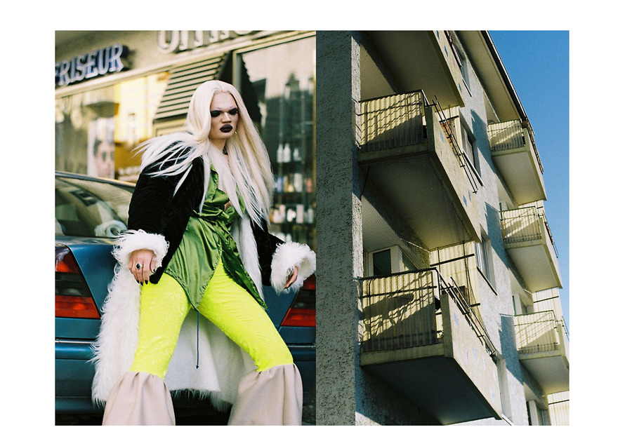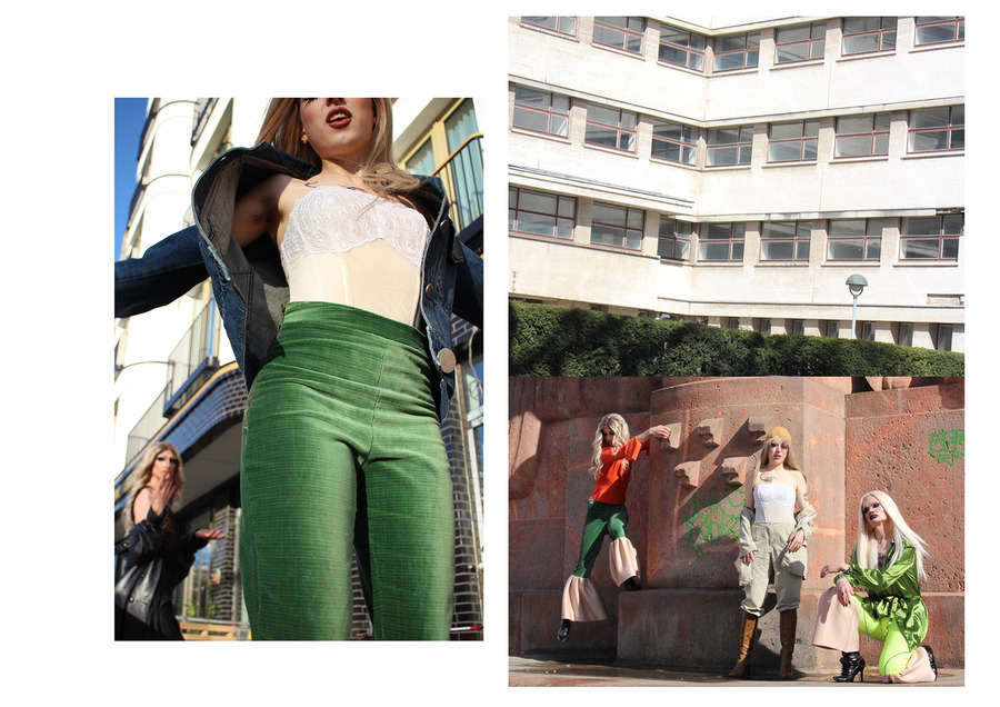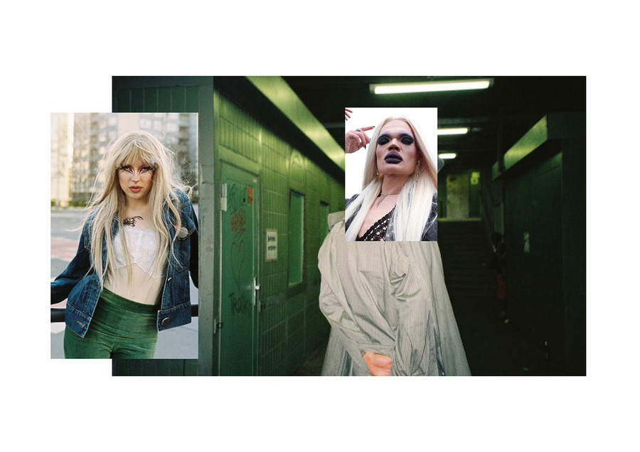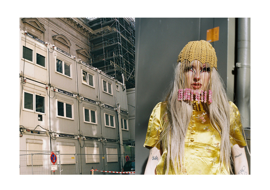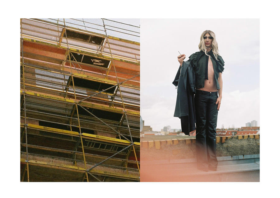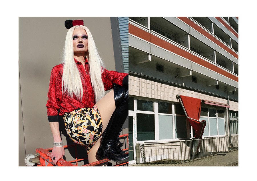 „For a series of collages combining architectural and reportage photographs, fashion collective Delirium and I partnered up, showing our friends´ drag spirit conquering the city.“