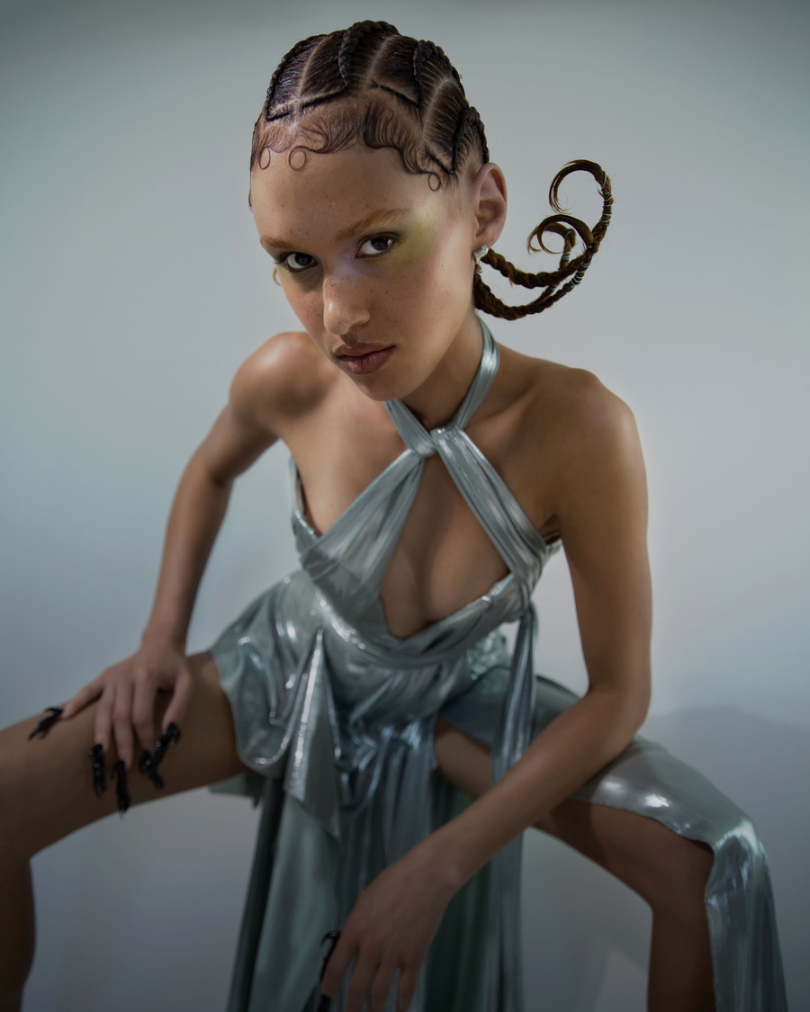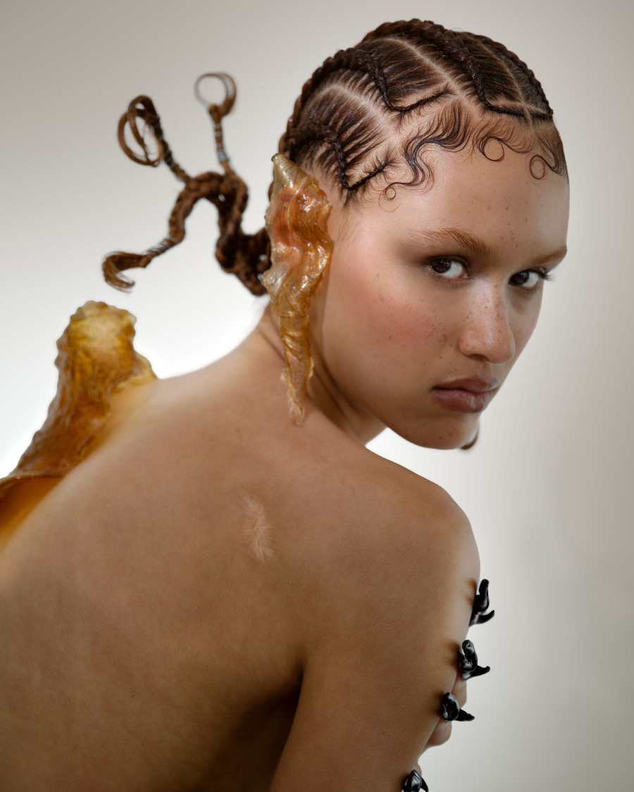 A KALTBLUT exclusive. Photography by Elisa Michelle. The model is Ebony. Hair by YazzBratzz. Make up by Emma Catry. Styling by Sydney Luchies using Mugler, Herpium, Rachel Klok, Sophie Tine, Drool Jewelry, Christine Helena Greeve.