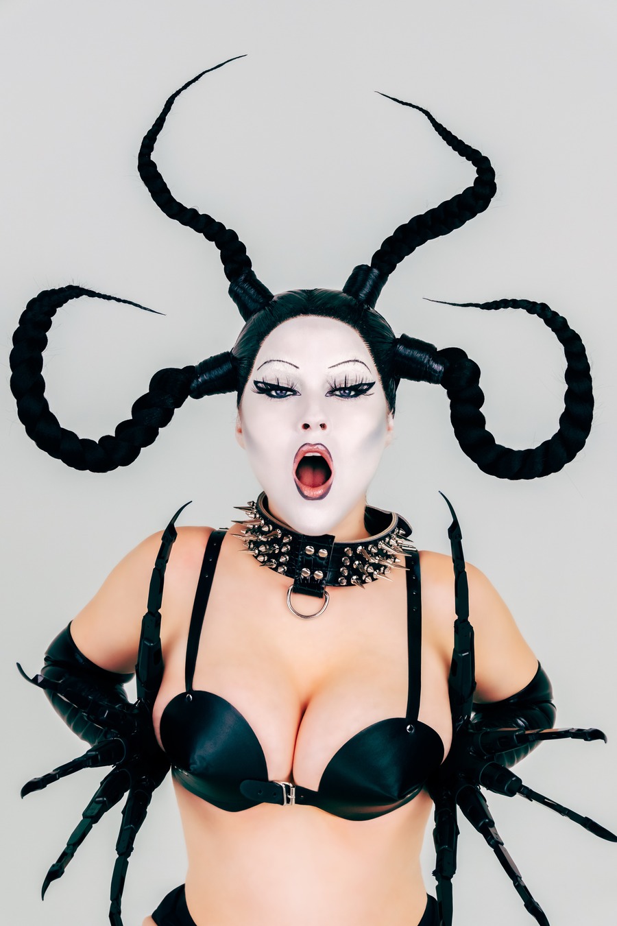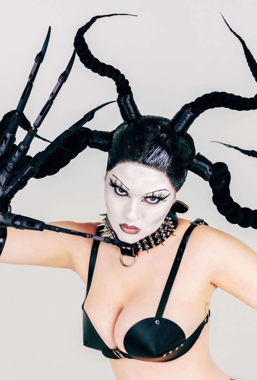“‘BLACK DIAMOND’ really exists as a performance art piece to be a campy representation of the traits in women that are vilified most in society. So all the lyrics have a huge ‘fuck-you’ undertone. There is a ton of arrogance in the music because the character is a psychotic, narcissistic supervillain set on interdimensional universal domination. She is meant to be triggering to anyone who doesn’t want women to be powerful, like themselves, be loud, or take up space. The entire project (music, content, stage show, and visuals) is meant to force the conversations about misogyny and bigotry that most people would rather not examine,“ EMM explained in an interview with Galore.