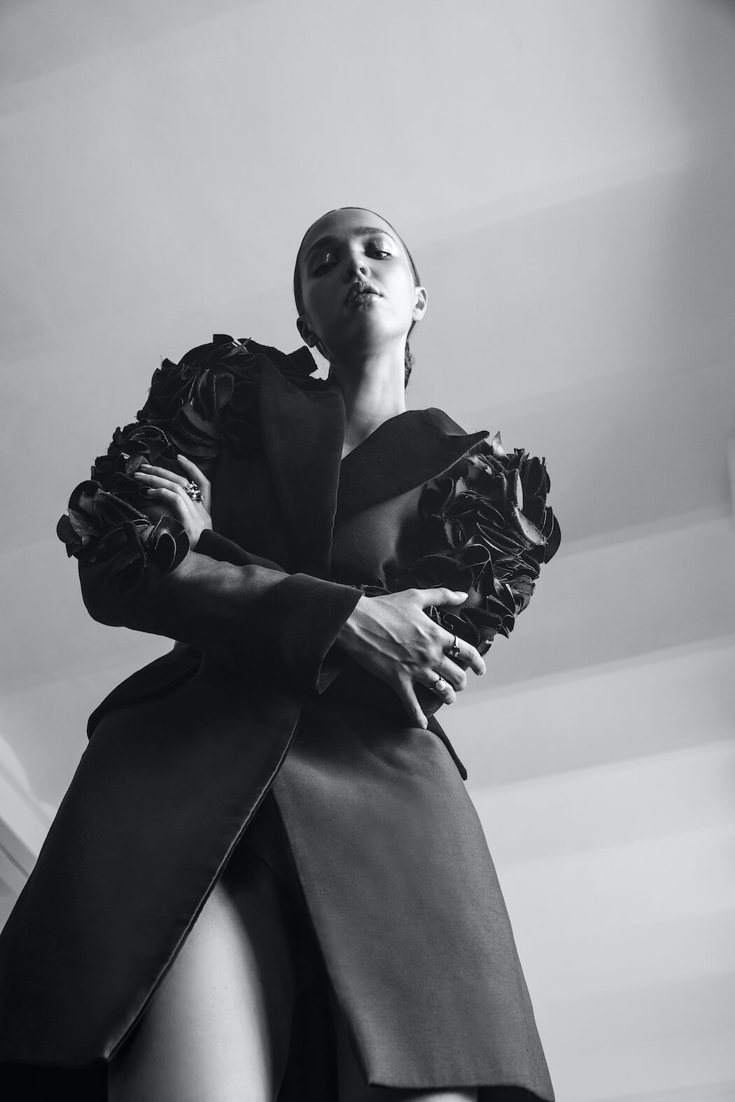 A KALTBLUT exclusive. Photographer Erica Fava captured Elena Martinengo for us. Styling by Fabrizia Paolella Ridolfi. Make-up by Beatrice Contino. Hair by Danilo Spacca. Location ISFCI Academy Rome. Fashion by Ester Orlandini, Emilio Cavallini, Federica Tosi, Myril Jewels, Moral Standards, Borsalino, Iosselliani, Reamerei, Montegallo, Judy Zhang, Giulia Conti, La Perla, Luigi Borbone and DuecciGloves.