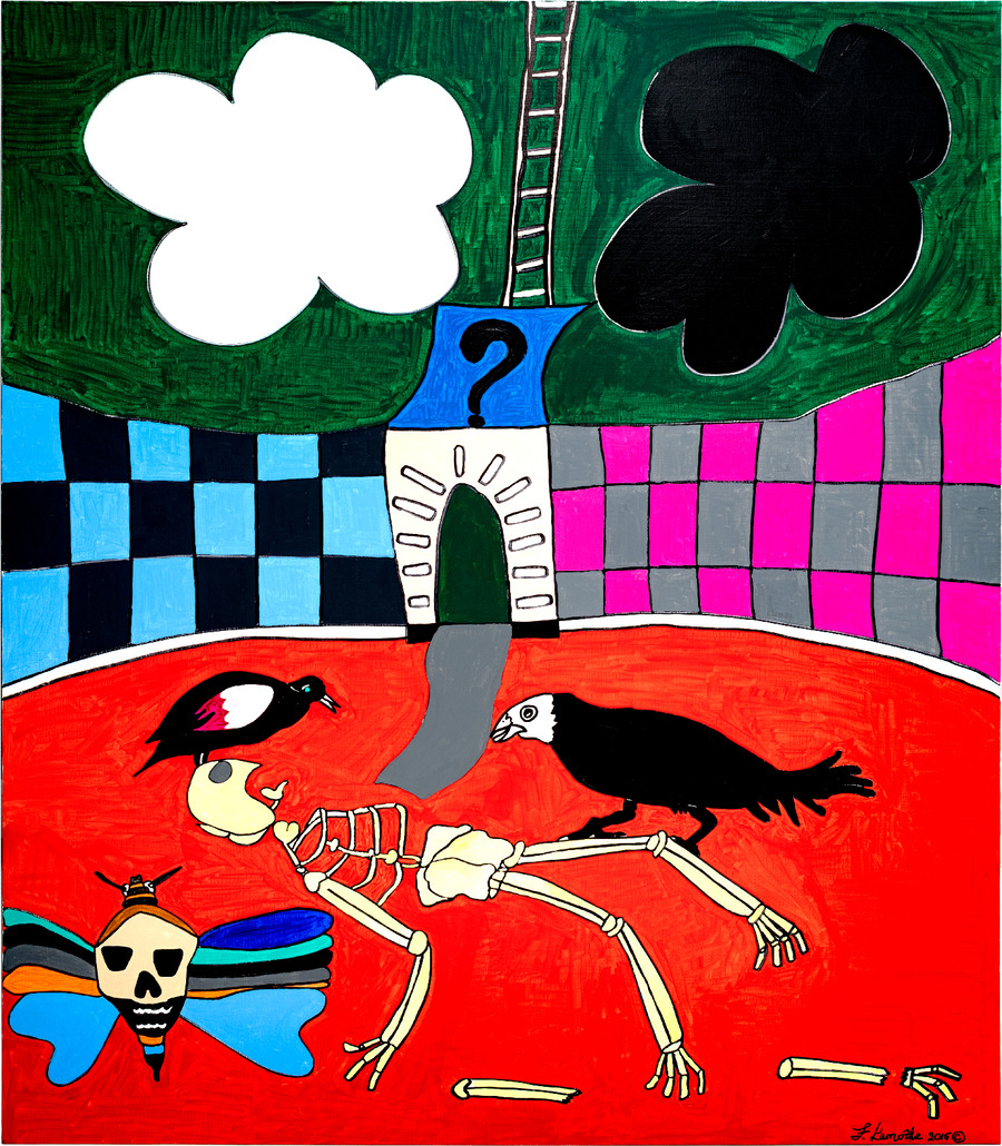 A deeper dive into the artworks will take exhibition viewers on a visual journey, the range of colour hues mirroring the complexity and richness of the Black community and its multiple identities. From Lamothe’s funky tango dancers and skeletons to Dreves Castillo’s cartoon-like characters, each artist brings their own distinct style to the table. The viewer is projected to Dreves Castillo’s lyrical sarcasm, riddled with pop-culture references, before taking in Lamothe’s iconic painted denim jackets as a final surprise.