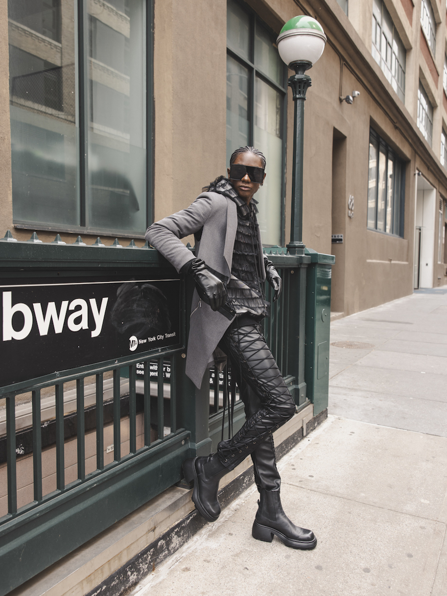 I originally became aware of Jose and his clothing design via the work of other photographers. It popped off the page because it was both dramatic and relatable, as in, I could visualize it just as easily on the runway as in the East Village or SoHo! Instantly I knew I wanted to work with him and began conceptualizing what that collaboration would like in editorial form. Once we finally connected, Jose and I were in talks to work together for quite some time, but due to scheduling conflicts and being two very in-demand NYC based creatives, the stars hadn’t aligned until this point. And so, “Black Magic City” was eventually born and features Soid Studios (Jose’s Brand) 2022 Fall Winter Collection of “Future Punk” designs.”