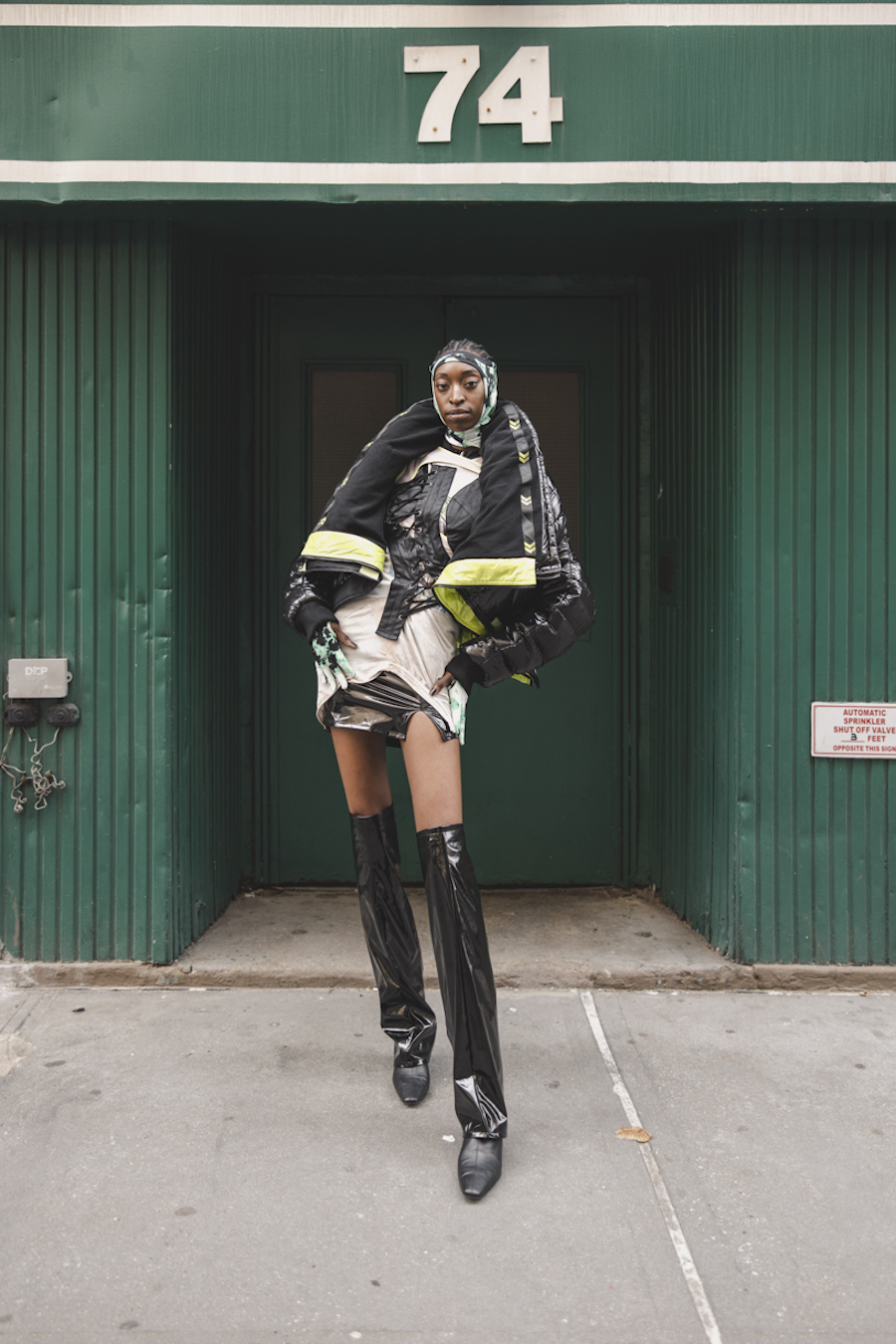 I originally became aware of Jose and his clothing design via the work of other photographers. It popped off the page because it was both dramatic and relatable, as in, I could visualize it just as easily on the runway as in the East Village or SoHo! Instantly I knew I wanted to work with him and began conceptualizing what that collaboration would like in editorial form. Once we finally connected, Jose and I were in talks to work together for quite some time, but due to scheduling conflicts and being two very in-demand NYC based creatives, the stars hadn’t aligned until this point. And so, “Black Magic City” was eventually born and features Soid Studios (Jose’s Brand) 2022 Fall Winter Collection of “Future Punk” designs.”