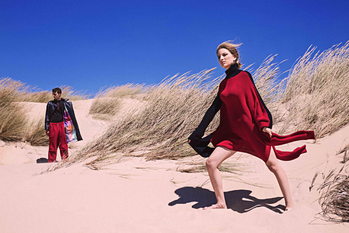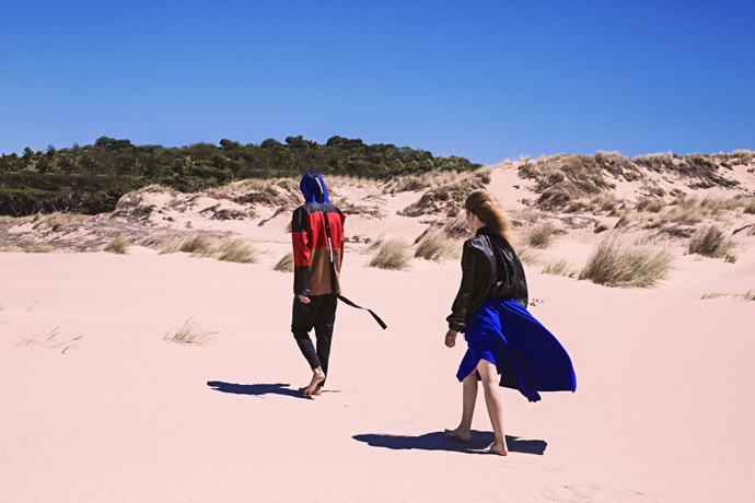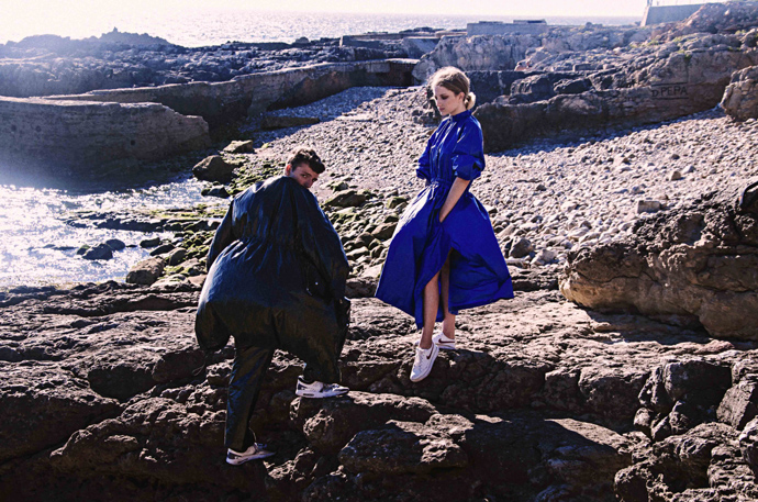 A KALTBLUT exclusive. This fashion editorial is inspired in a dystopian fiction that makes reference to the film Blade Runner. These two replicants (models) are genetically perfect survivors that try to survive in the new world. Creative director & Photography by Ana Abril. Models are Diego Reis and Thaylisi Grazielle. Styled by Adam Kidari using fashion by Pedro Pedro, COS, Ricardo Andrez Studio, Nike, Zara amongst others. Make-up by Regiane Rocha. Photographer Ana Abril was born in Madrid, he studied journalism degree in Brussels where she completed a photography degree and immediately started working as a reportage photographer.