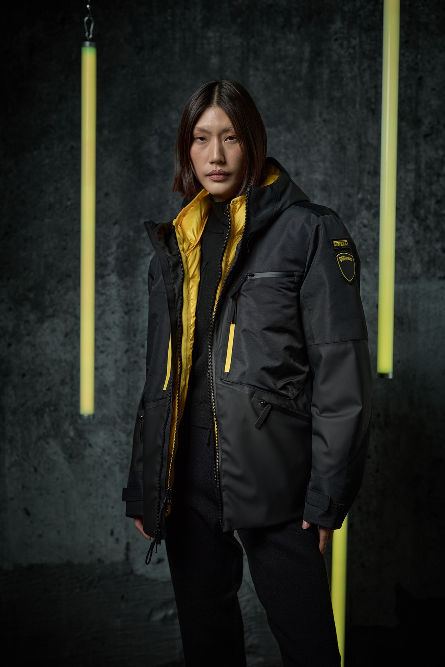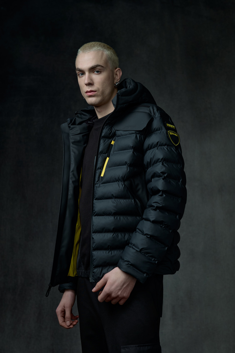 The Blauer x Pirelli capsule collection consists of four exclusive, functional outerwear pieces, all made with cutting-edge materials in sleek black and bright yellow—reflecting the signature colours of the Milanese brand. Each item captures a balance of innovation and environmental responsibility without compromising on style.