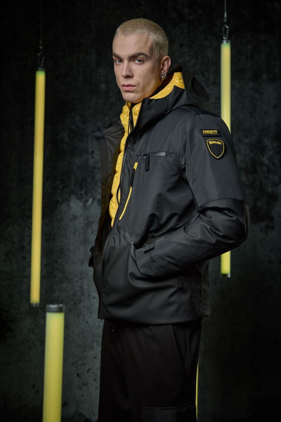 The Blauer x Pirelli capsule collection consists of four exclusive, functional outerwear pieces, all made with cutting-edge materials in sleek black and bright yellow—reflecting the signature colours of the Milanese brand. Each item captures a balance of innovation and environmental responsibility without compromising on style.