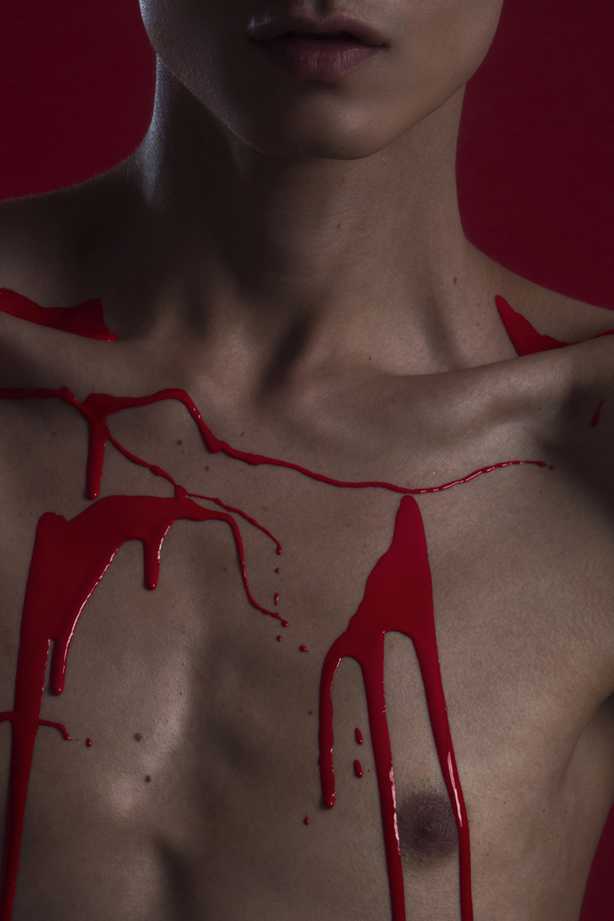 A KALTBLUT exclusive. Bloodmosis is an editorial inspired by all androgynous beings who feel marginalized, who are at a midpoint, explain the internal metamorphosis that they have to accept, they feel happy with themselves and finally realize how beautiful they are. These photos were made with the model of Androgino Jhonny García, under the lens, art and makeup of the young Lucas Botero, 27 years, who was born in Cali, Colombia and has worked with art and photography for 8 years.