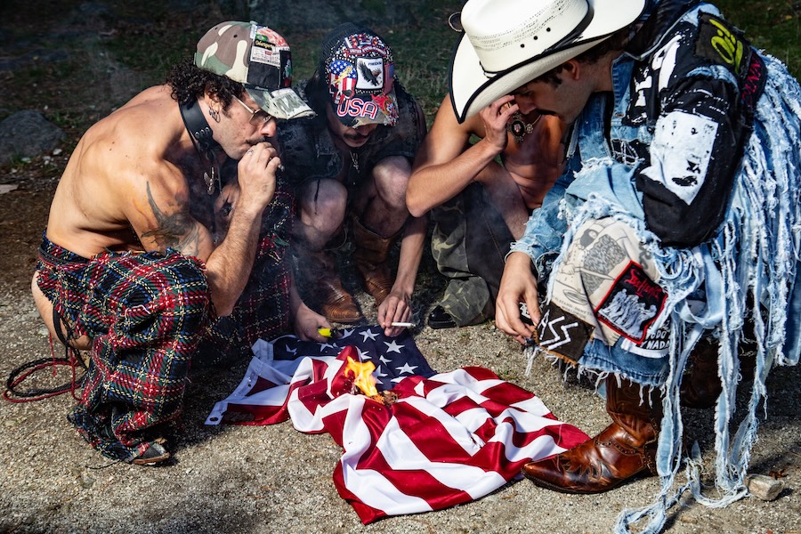 This softness is then directly contradicted by the prominent (ironic) nationalist American imagery and crust punk styles. The opposition of the aesthetics and the scene is what makes this story so powerful.”