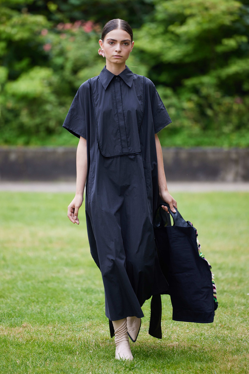 At the heart of Bobkova’s artistic ethos lies a steadfast commitment to eco-conscious fashion production. Every garment comes to life in Ukraine, where the brand actively practices upcycling, skillfully transforming leftover textiles into ribbons and textured fabrics that grace dresses, jumpers, tops, shoes, and bags. Delicate decorative flowers are meticulously assembled from fragments of lace and silk, meticulously enhancing the uniqueness of each piece. The brand’s reverence for handmade artistry is evident in the intentionally unfinished details, such as visible stitches and cuts, celebrating the exquisite imperfections that make each creation truly extraordinary.