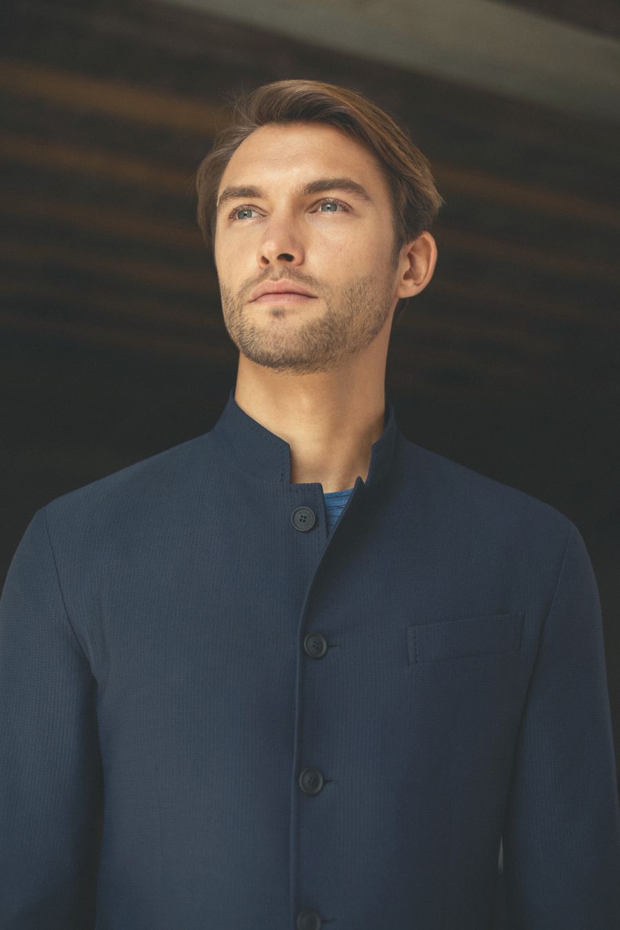 From the encounter between jersey and a very fine stretch nylon comes the B-Tech line: highly performing pieces which interpret the sartorial tradition and ensure freedom of movement. The line is made up of three suits – mandarin jacket, double-breasted and single-breasted – with a breathable lining, thanks to the mesh fabrication. www.boggi.com
