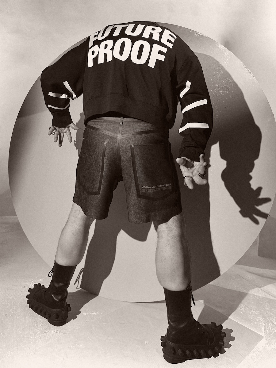 “I aimed to challenge and reimagine traditional methods. Why are clothes still being stitched when we have the potential to explore so many other techniques? This project is all about innovation, research, and pushing the conventions of fashion. It was great to be given total creative freedom by G-STAR.” – Walter Van Beirendonck