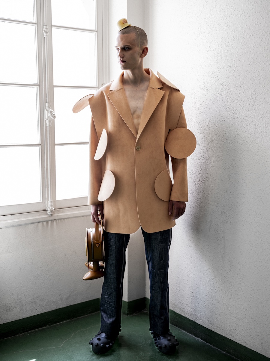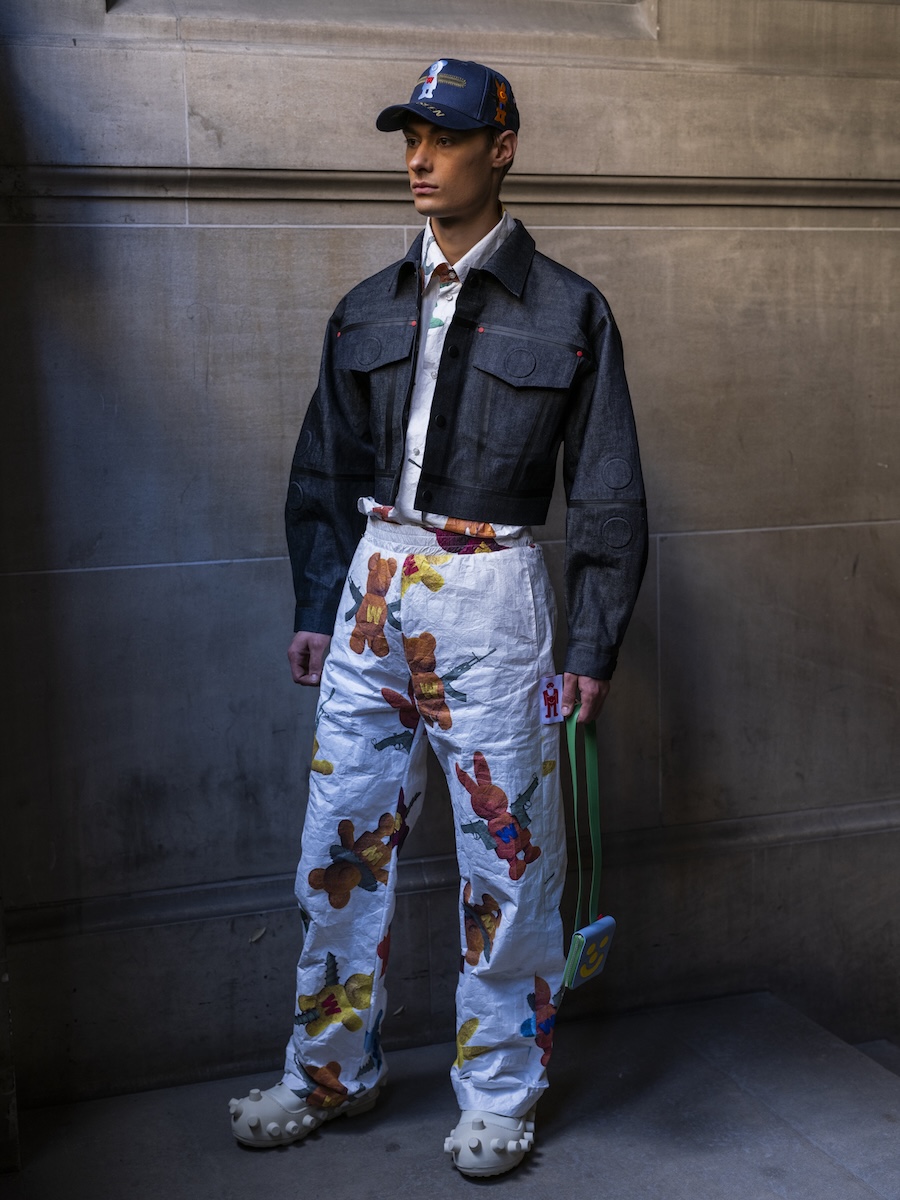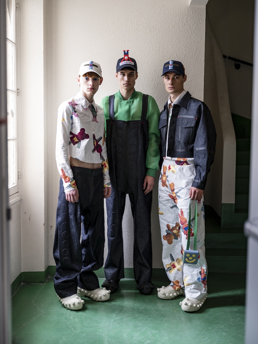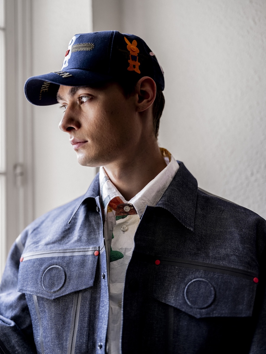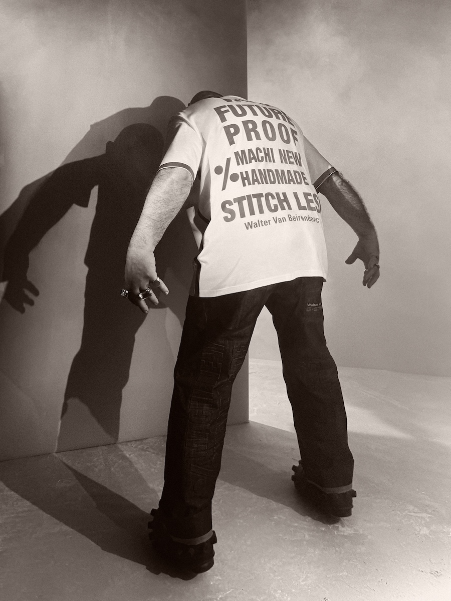 This limited-edition collection features 19 stunning pieces, including standout items like the Square Jeans, Wader Jeans, Embossed Pamflet Jeans, and the Future Proof Jacket, all showcasing embossed dots, taped seams, and exaggerated details. Crafted from certified cradle-to-cradle fabric, the collection also boasts 3D-knitted tops and sweaters embellished with Van Beirendonck’s cheeky slogans ‘Future Proof’, ‘Wow’, and ‘Stitch Less’. The playful ‘Denim with Balls’ concept is unmistakably present throughout the collection.
