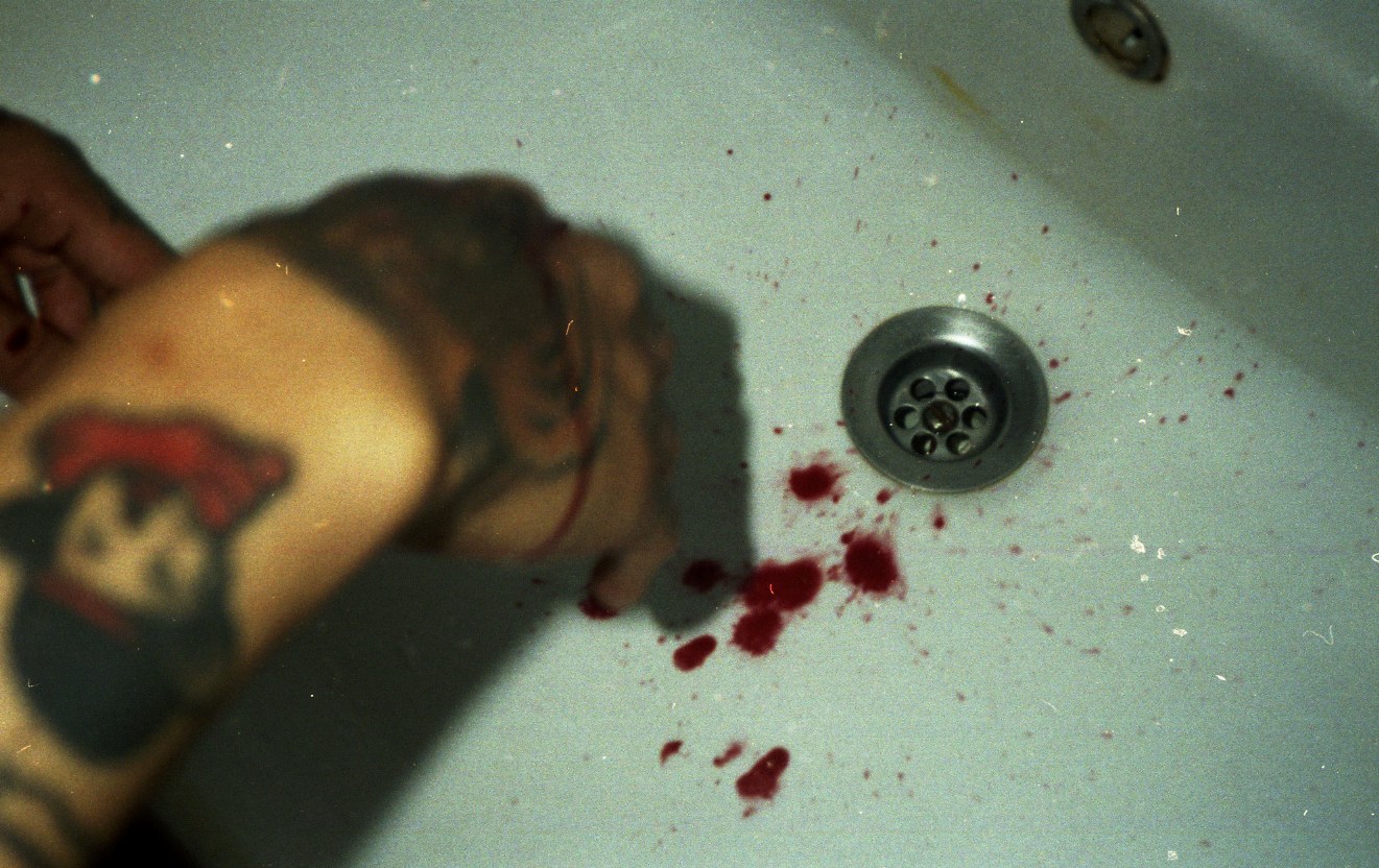 “We met Peter on instagram some time ago and got to know each other better on Facebook. He wanted to meet up and we decided to have him stay with us for a few days. When we picked him up his freshly tattooed thigh had swollen to epic proportions and he had a temperature for a while. He had to be on painkillers all the time but this didn’t stop him from being so crazy, like the night he ended up bleeding.