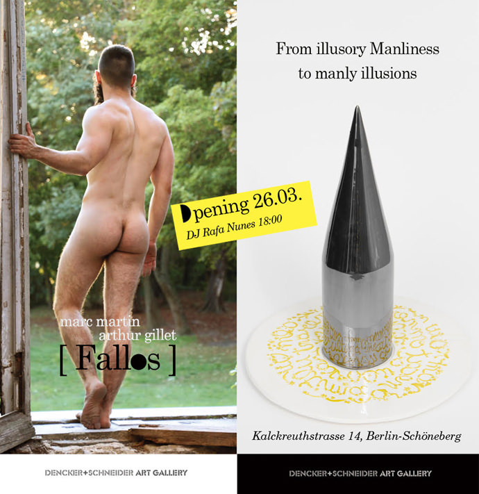 Fallos is the result of the collaboration of two artists: Marc Martin and Arthur Gillet. They both are fascinated by different hypostases of maleness, archaic as well as contemporary, and their work is informed by this obsession. The result of this association is a beautiful book and an exhibition that will takes place from March 26th till May 5th at the galerie Denker & Schneider in Berlin.