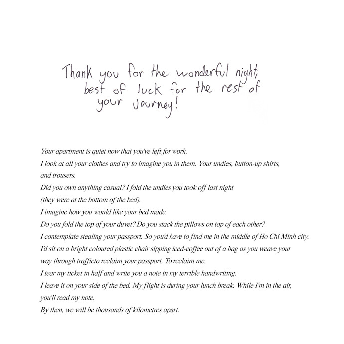“In those 5 months, I took care of myself physically and mentally by attending ACC counselling sessions. I was ready to introduce sex into my life again. Consensual sex. Protected sex. I dated men with the intent of getting to know them and this went well. When it came time to have sex with them, I put my trust in them and we had beautiful times together. Afterwards, I pulled my camera out and took a photo of him. I took a few more. I kept these for myself because I wanted to remember that memory and how I felt when I was with him. I then did this to the next boy, and then the next. It’s coming up to a year since I started taking photos of the men I have slept with. And I compiled them all into a book. The book is called ‘Come Back To Bed’ and it contains stories and photographs of the men I spent time with. I want to be able to help people and make their healing process easier.”