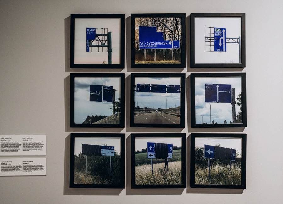 KALTBLUT: The downstairs part of the exhibition feels a lot more emotional and intense, especially considering that it is also used as a shelter to hide from russian missiles and drone attacks. One of my favourite parts is the painted street signs designed to deter the aggressor from finding cities like Kyiv.