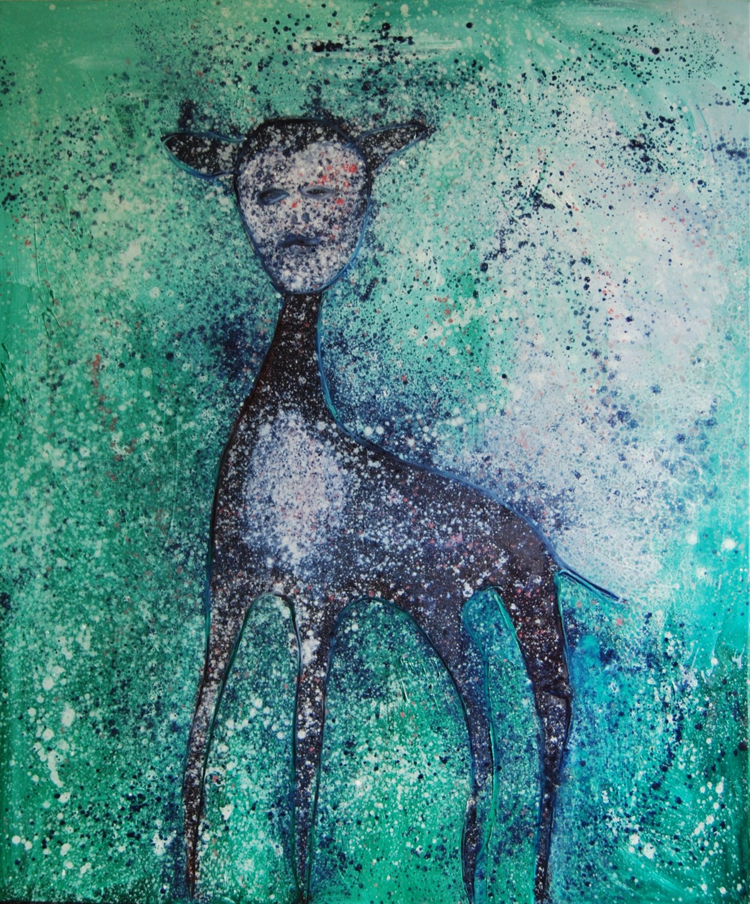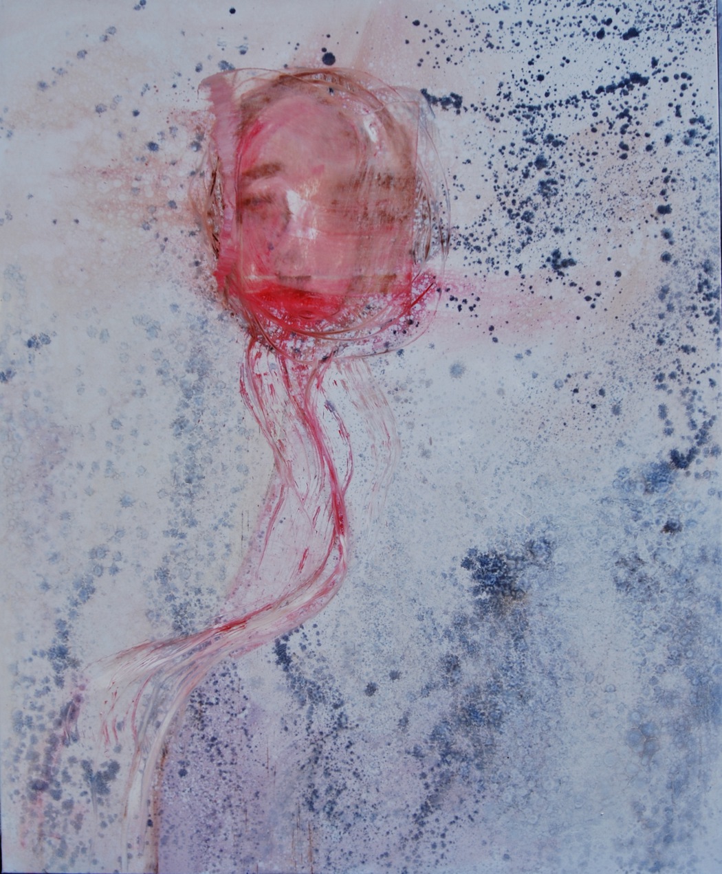 I also have a series with narrative translations of cells and neurons, and conjunction between modern expressionism and Asian manga style. I want to show mental positions in landscapes, without painting any trees, skies or horizons. My own technique with a certain resolution of the canvases into borderless spaces should remember of places someone has been at or has seen in a dream.