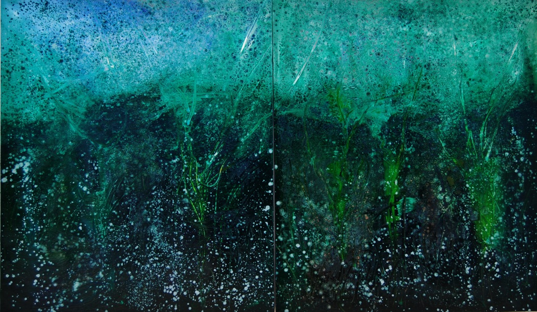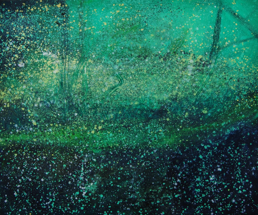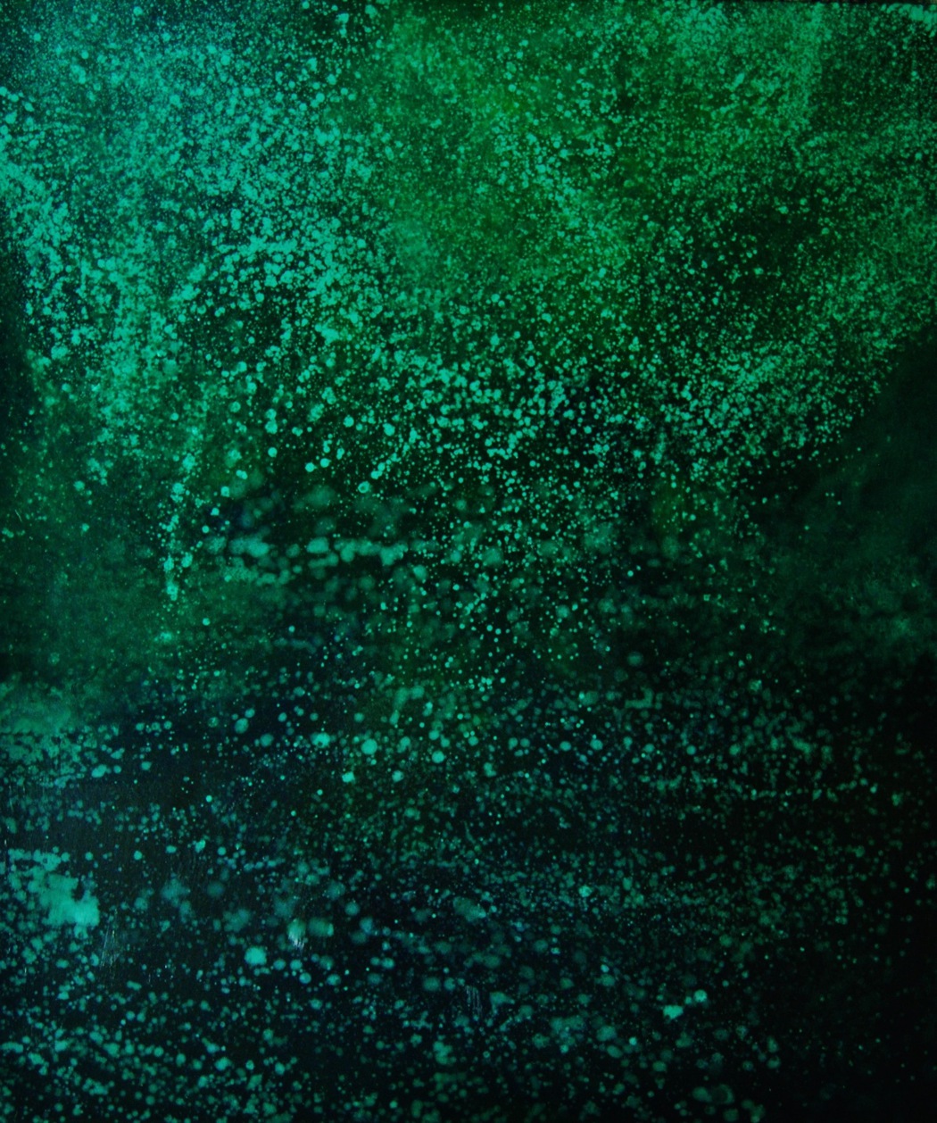 I want to step behind my artworks, my own ego is not appearing in any of them, they are reduced to a unique feeling of existence. Indeed is the current discussion of climate change a reason to stay green and show a connection to our environment, to the smallest parts of our planet. So I found the universe in a pond.”