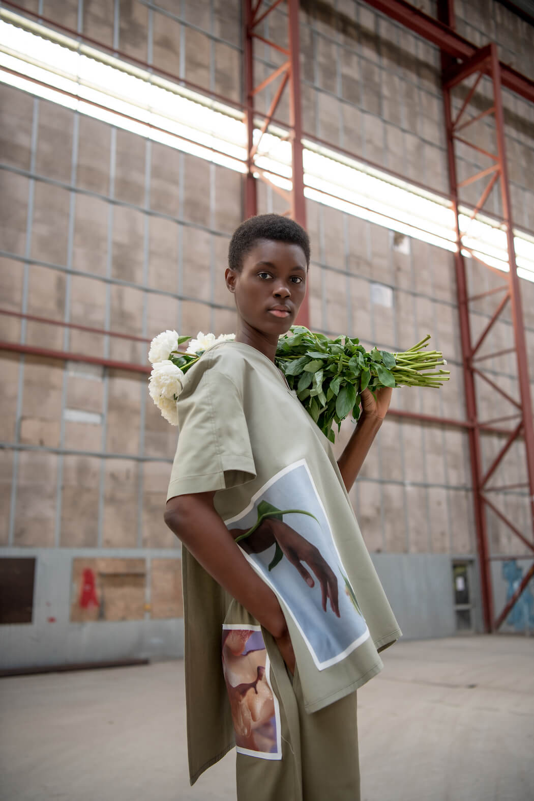 “MAKING A COLLABORATION WITH TABLEAU HAS ALWAYS BEEN SOMETHING THAT FELT NATURAL TO ME. FLOWERS AND HUMANS ARE LIVING ORGANISMS THAT ARE SOMEHOW SIMILAR IN ANATOMY AND AESTHETIC, BEING BOTH STRONG AND FRAGILE AT THE SAME TIME. MERGING THE TWO IN A PHOTO FUSED CONCEPT THAT WOULD BE PRINTED AND HAND-SEWN ONTO GARMENTS WAS A SINGULAR IDEA FOR BOTH TABLEAU AND I. THE COLLECTION IS KEPT IN EARTHY TONES MAKING IT RESONATE WITH THE HUMAN ANATOMY AND THE BOTANICAL WORLD. THE COLLECTION IS FREE AND FLOWY AS HUMANS AND NATURE ARE SUPPOSED TO BE.”